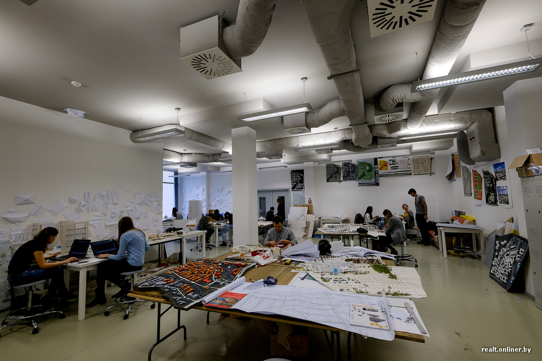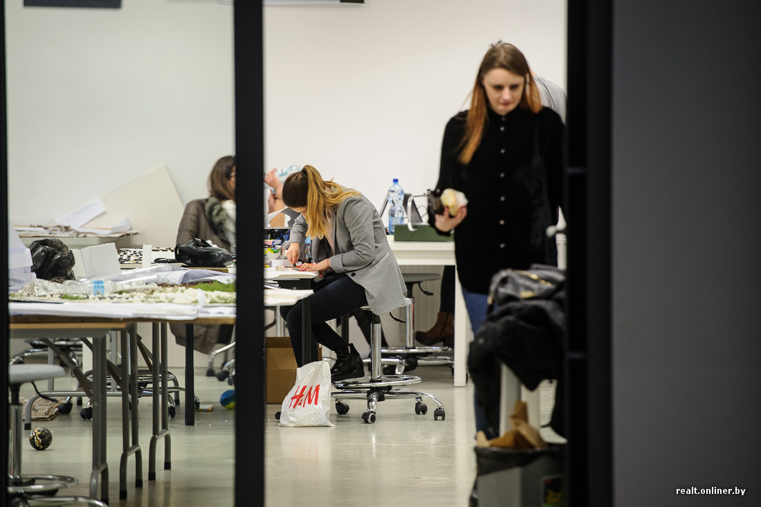 С Тимофеем мы идем в новое здание архитектурного факультета. В холле — выставка макетов. Здесь же проходят и некоторые экзамены.