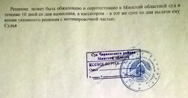 — Когда настало время суда, папа поехал в Червень один: мы были уверены, что все разрешится благополучно, так как очевидно, что работы начаты и продвигаются. О том, чтобы нанимать адвоката, даже не думали, — понимает свою ошибку Екатерина.