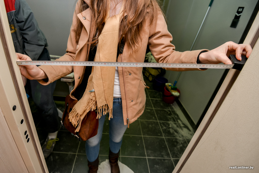 — Сам проем вроде бы стандартный — 90 сантиметров, — объясняет причину недовольства мама Вероники. — Но дверное полотно — уже 78 сантиметров. Если открыть дверь полностью, то между крайними выступающими точками остается всего 65—67 сантиметров. Как заносить сюда мебель? Да тот же холодильник, который вроде и имеет размеры 60×60 сантиметров, но доставляется в коробке? Он просто сюда не пролезет! Неужели коробку и защитную обшивку придется оставлять внизу?