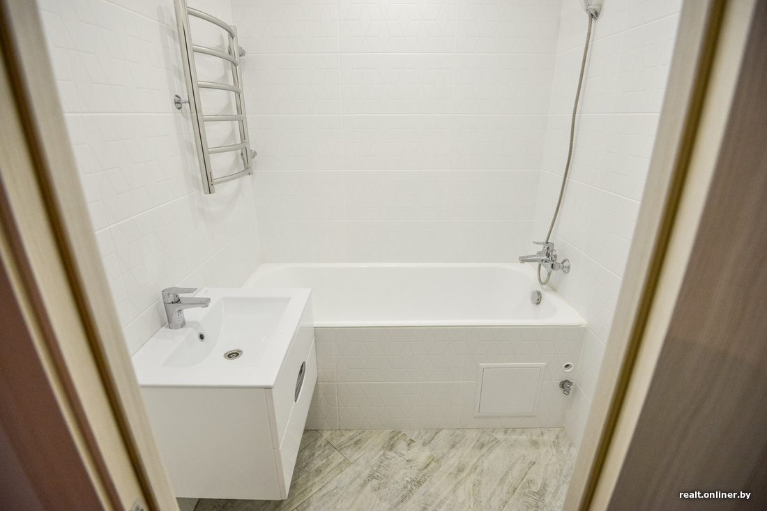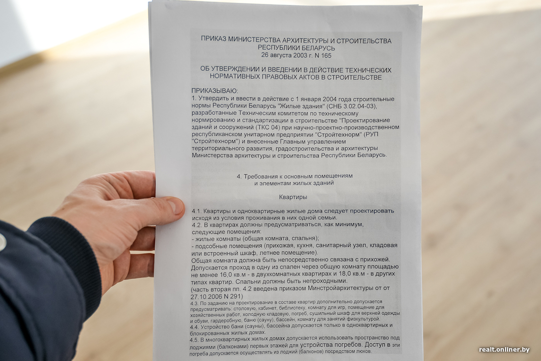 Однако наше знакомство с интерьером началось с неприятного момента. Представитель застройщика попытался очень вежливо, но запретить фотосъемку в квартире: мол, девушка еще не собственница — когда примет квартиру, тогда и снимайте, а пока фотографировать нельзя («я не знаю, для чего вы это делаете»). На просьбу предоставить официальный документ (не внутренний, а общереспубликанский), в котором была бы прописана такая норма, мы получили ответ, что такого законодательного акта, увы, не существует. Следующим аргументом представителя застройщика стало «я не хочу», что, в общем-то, и не аргумент. В итоге все сошло к тому, что фотографировать нельзя только сотрудника компании, а все остальное можно.