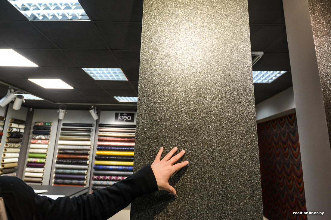 — Справимся! — в ответ шутит продавец и ведет в комнату этажом ниже, где выставлены образцы подороже. Девушка достает несколько рулонов шириной по 1,2 метра и раскладывает на небольшом столе.
