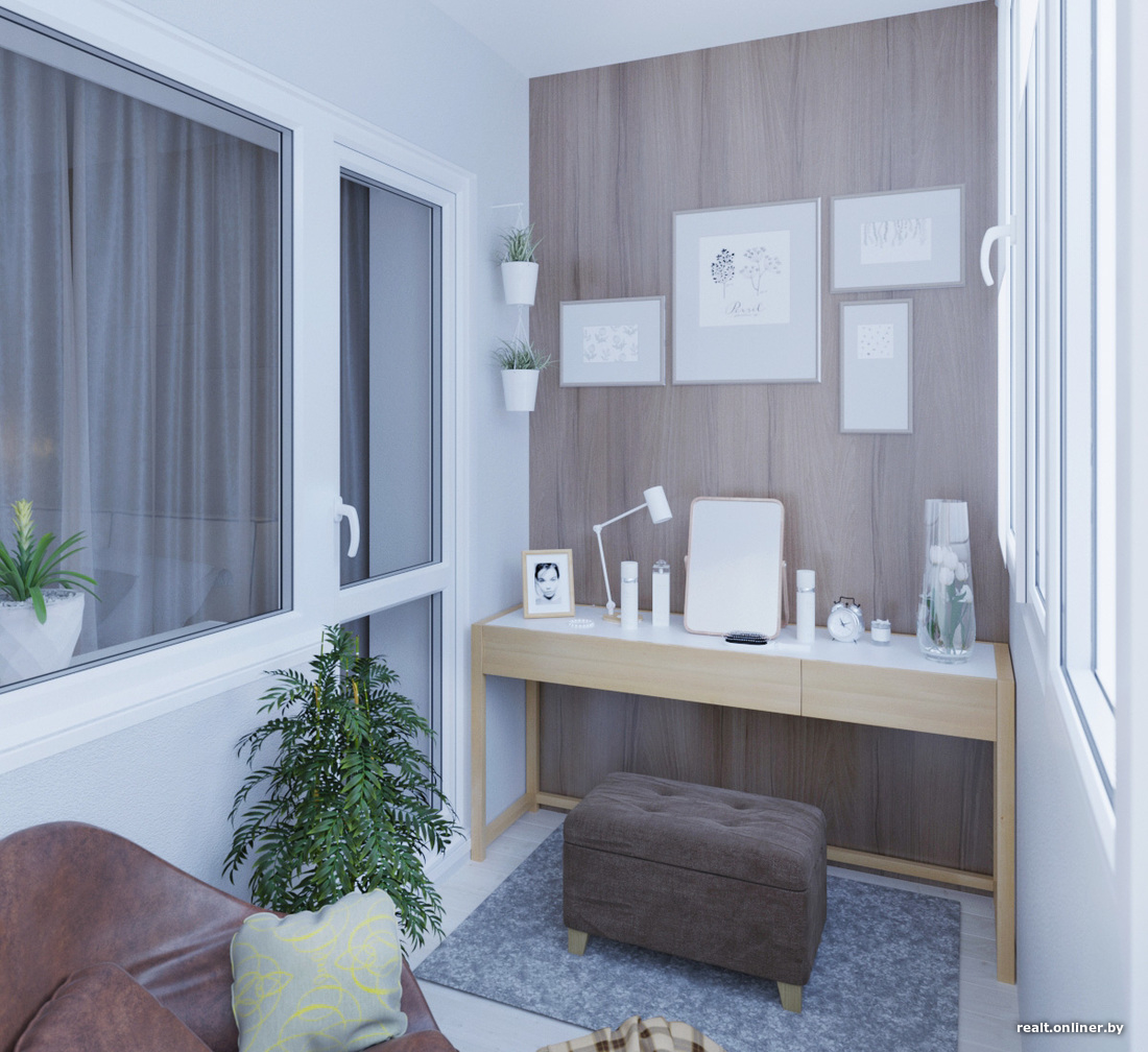 В квартире есть две лоджии. Одну их низ хозяева хотят превратить в подобие кладовой, вторую — в место отдыха, где вечерком можно посидеть и посмотреть в окно.