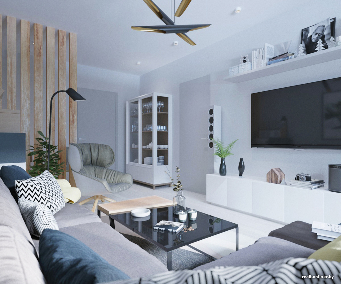 У нас часто бывают гости: друзья, родители. Хотелось бы предусмотреть зону отдыха и рабочую зону. Стиль — хай-тек.