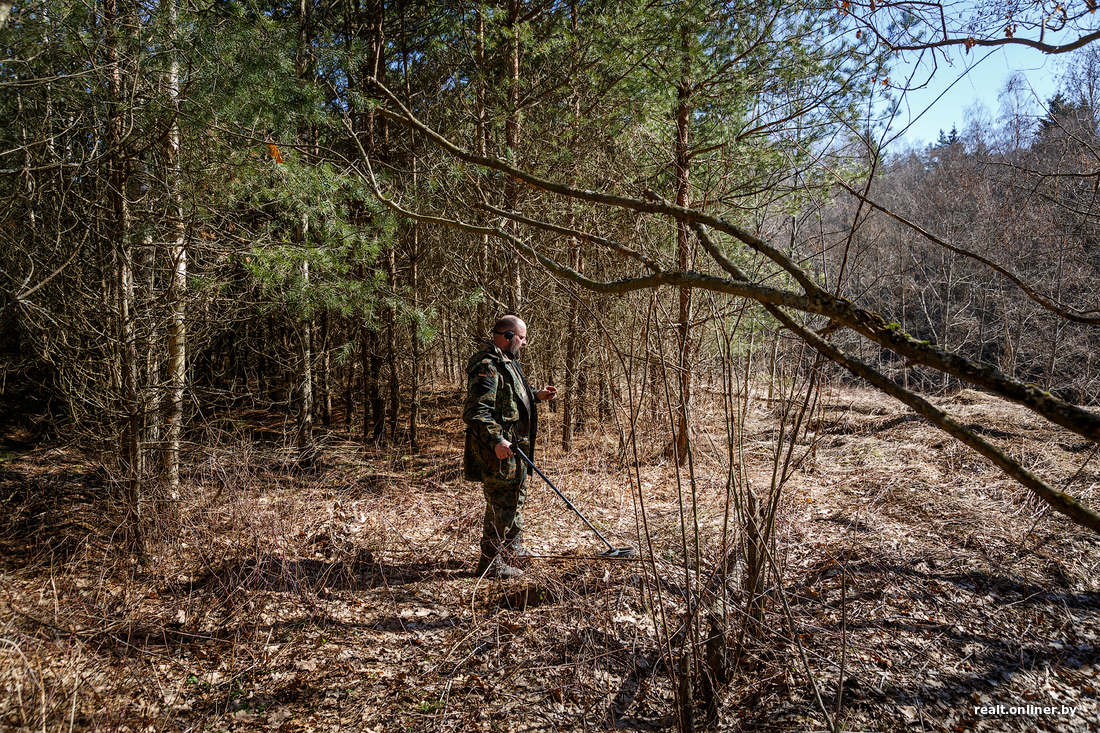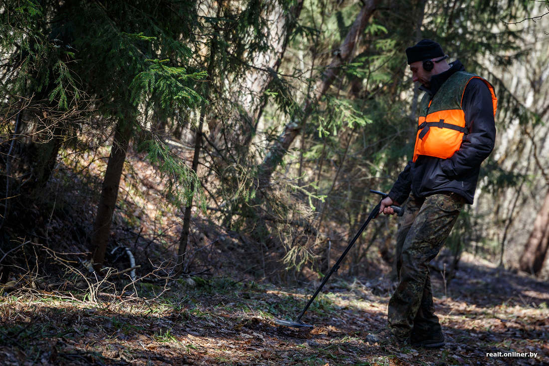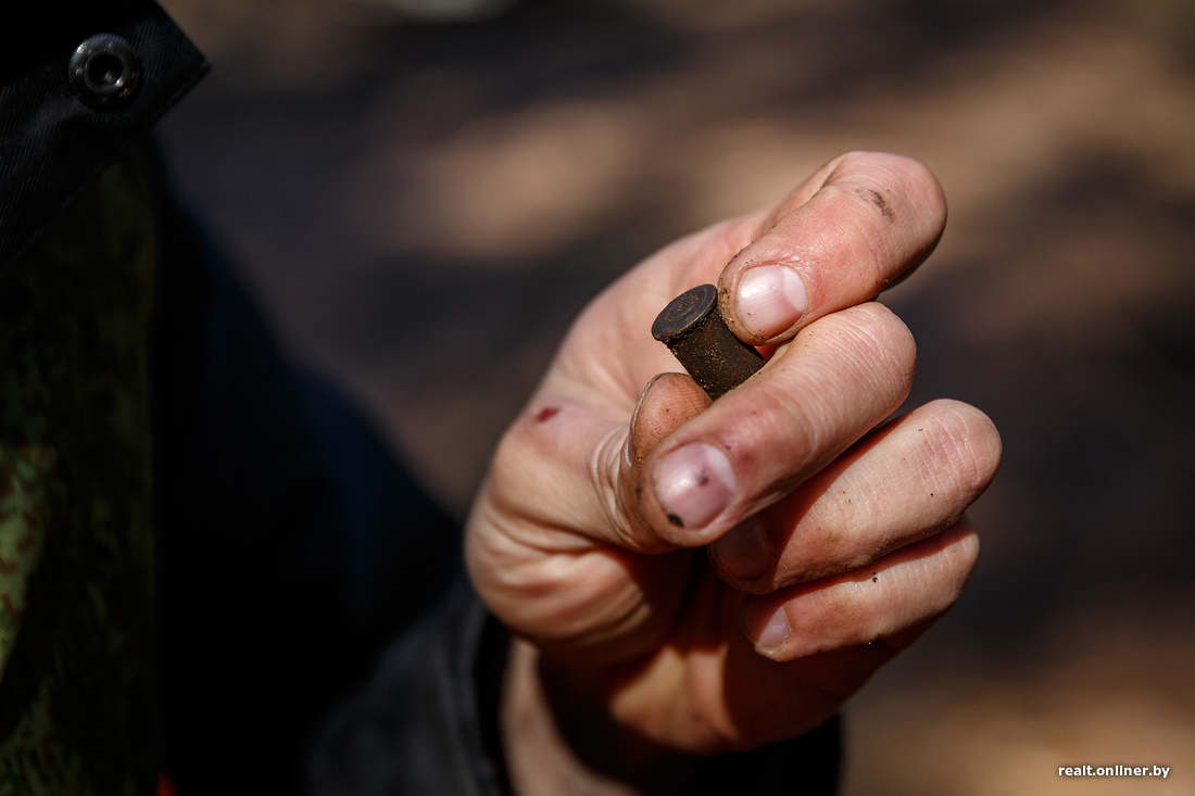 Тем временем поиски раскинулись уже на оба берега. На старой лесной дороге металлоискатель дает сигналы через каждые несколько метров. Почти всё найденное — гильзы или старая проволока. Профессионалы ловко откапывают кусочки железа и складывают в сумки.
