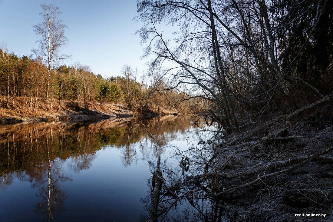 От Минска к нужной реке ехать километров двести. Чем ближе к месту, тем дороги хуже, солнце — выше, деревни — тише, а леса — гуще. Места вокруг совсем дикие.