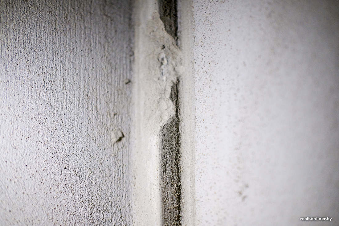 На осмотр первой квартиры у специалиста из «Эво Лэнд» ушло немало времени, при этом «черных меток» на стенах практически не появилось, разве что в одном-двух местах есть небольшое неприлегание штукатурки. «Завалов» стен, а также бугров или впадин вообще не обнаружено — местным штукатурам можно аплодировать.