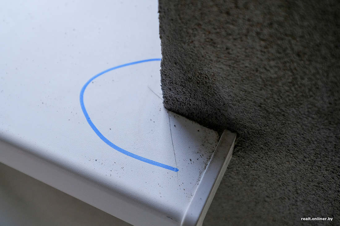 — По стенам вопросов практически нет, кроме двух мест. Хотя в целом ситуация чуть хуже, чем в предыдущей квартире. Потолок выполнен хорошо: все перетерто, поэтому ничего падать и осыпаться не будет. А вот окна надо регулировать практически все. Более того, заниматься регулировкой вам придется периодически: створки очень большие и тяжелые, со временем они начнут провисать из-за существенной нагрузки на фурнитуру. Также под замену пойдет несколько поврежденных подоконников.