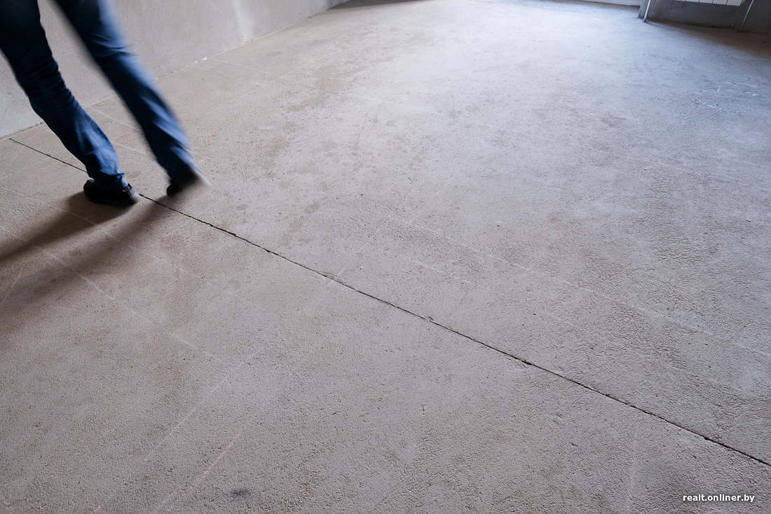 На полу есть место, где немного поднимается стяжка, — это можно легко сошлифовать. Здесь снова встречается скрип в районе деформационного шва.
