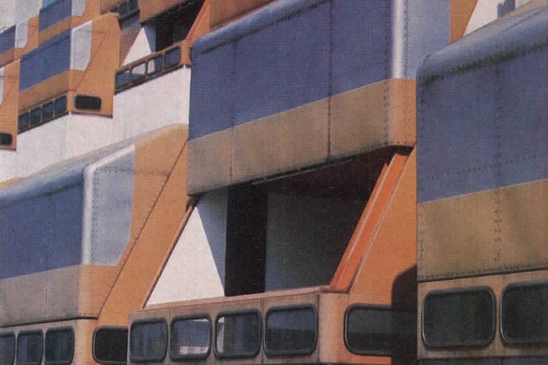 Среди всей застройки комплекса Olivetti в Ивреа выделяются два здания, построенные позже остальных и получившие названия Unità residenziale Ovest и Unità residenziale Est (Западная и Восточная жилая единица соответственно). Они возводились параллельно (1968—1971 годы), но по проектам разных архитекторов и получились максимально непохожими. Восточная жилая единица разместилась в историческом центре города, вдалеке от фабрики и окружающего ее района, и в этом был свой смысл. Внутри находились не только 60 квартир для гостей концерна, приезжавших в центральный офис компании в командировки, но и кинотеатр, бассейн, конгресс-центр, бар, кафе и магазины.