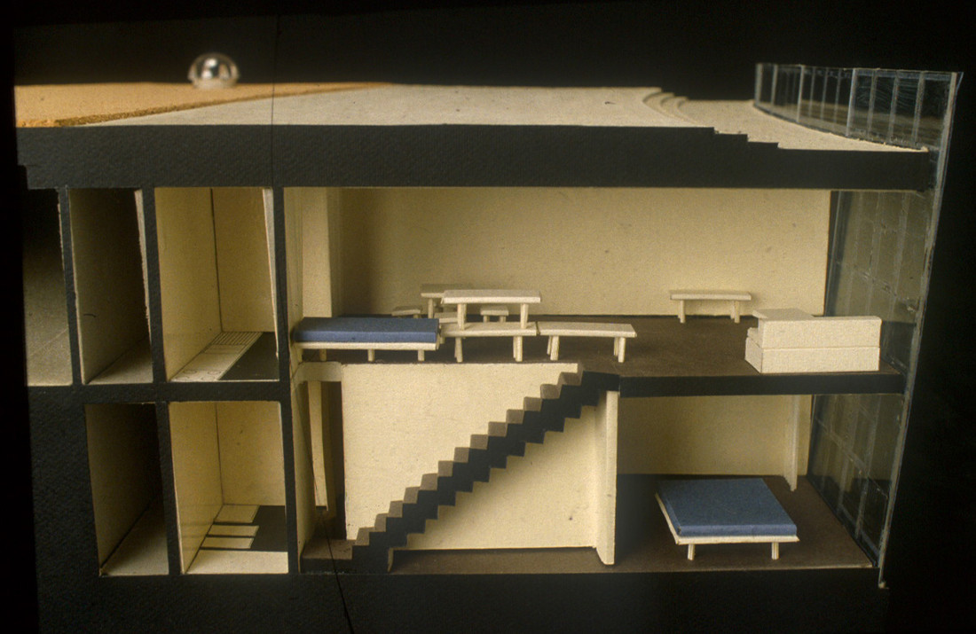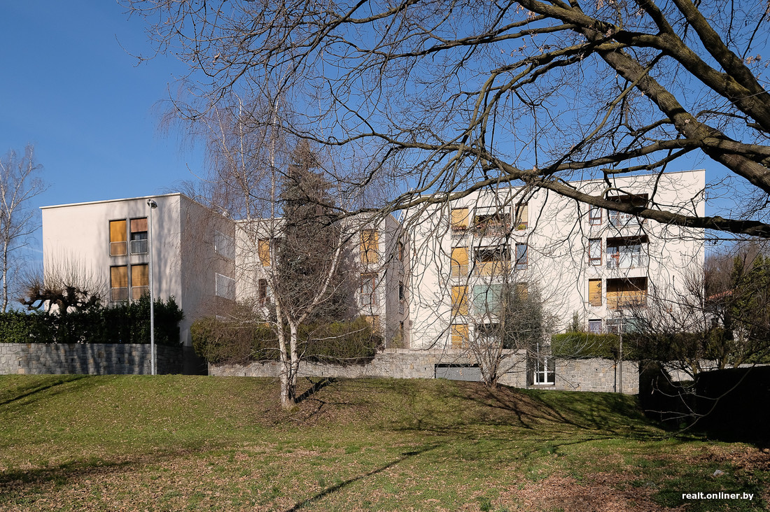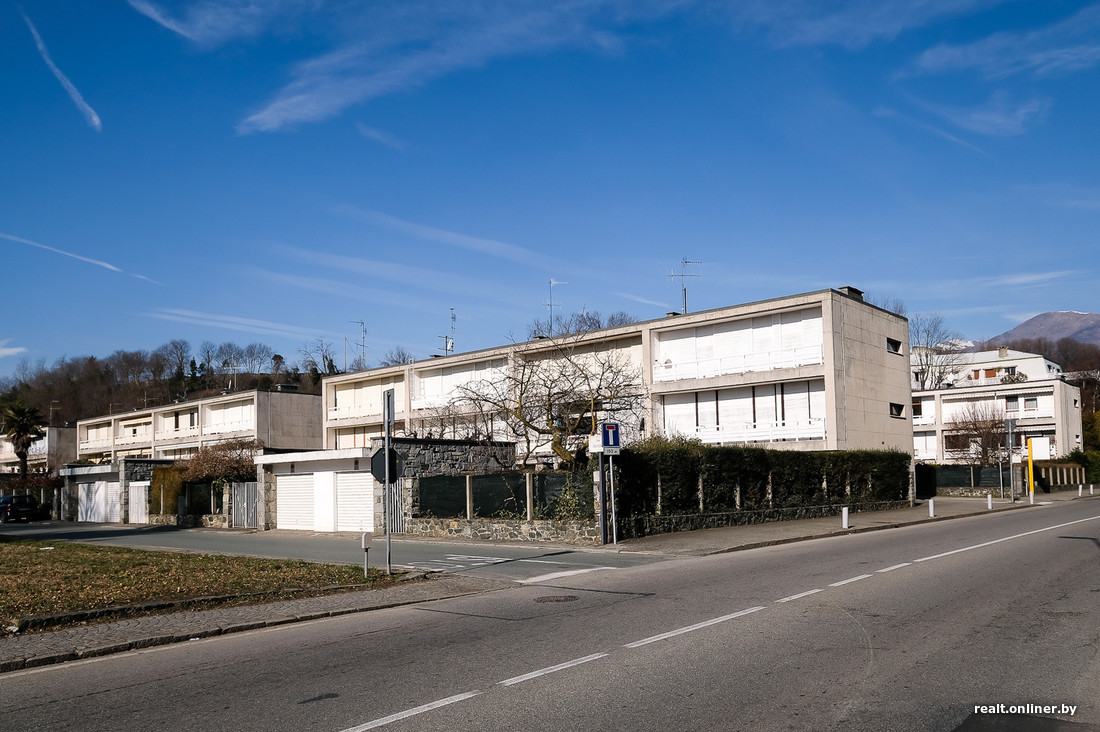 Западная жилая единица расположена уже на территории кампуса Olivetti, и это, вероятно, одно из самых оригинальных многоквартирных зданий в истории мировой архитектуры. Представьте себе полукольцо радиусом 70 метров, наполовину зарытое в землю. Лишь с одной стороны сплошной стеклянный фасад выходит во внутренний двор, ограниченный крутым склоном соседнего холма. Этим достигается определенная интимность комплекса: доступ на его территорию возможен лишь для жильцов.