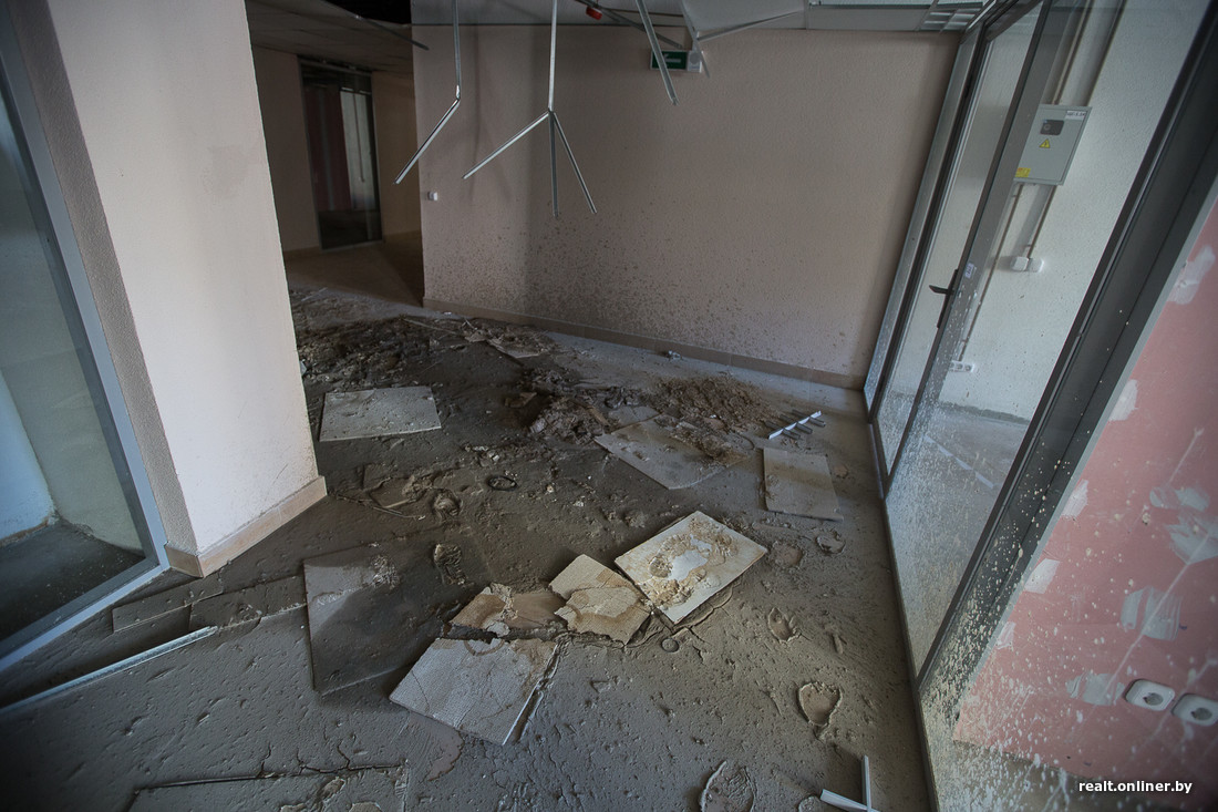 Как правило, первые этажи современных новостроек застройщик продает или отдает в аренду магазинам, парикмахерским и различным заведениям сферы услуг. Удобно: жилец может спуститься на лифте вниз и купить все экстренно нужное. Для жителей домов третьей очереди комплекса «Маяк Минска» компания Dana Holdings преподнесла еще более удобный подарок — полноценный двухэтажный торговый центр под названием «Променад». При этом напрочь забылась необходимость технического этажа, проще говоря — подвала, где сосредоточен доступ ко всем коммуникациям дома. Их спрятали в потолке и стенах коммерческих помещений. Собственники никак не могут приступить к ремонту и оборудованию магазинов, так как цокольный этаж регулярно заливает водой и канализационными отходами.