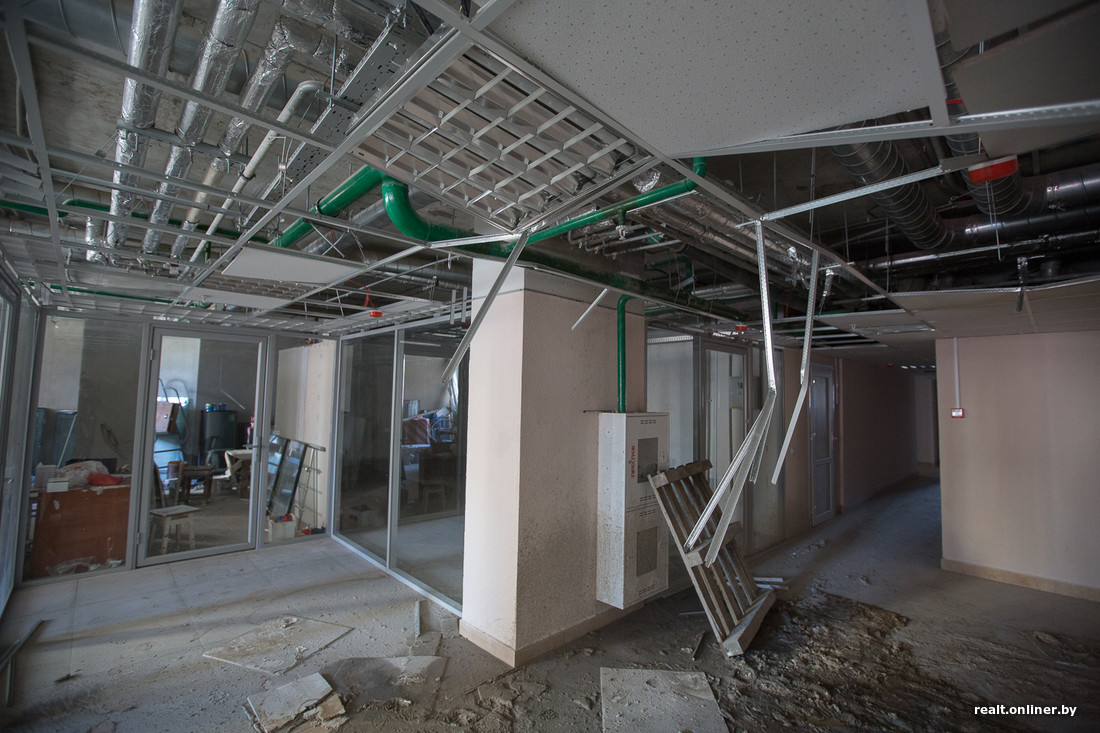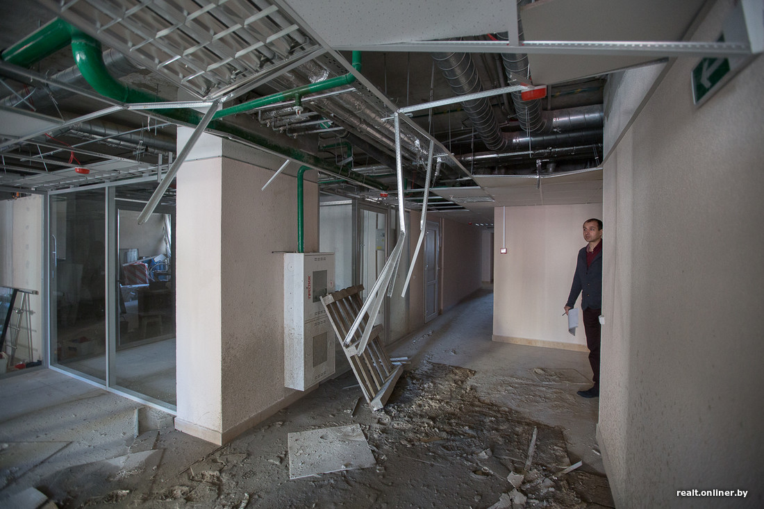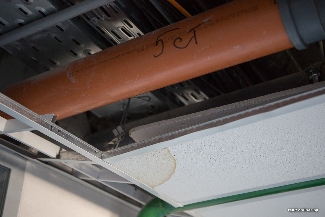 — Все системы коммуникации и жизнедеятельности дома находятся в потолках и стенах торговых помещений на цокольном этаже, — объясняет Алексей. — Почему это является большой проблемой? В «Маяке Минска» продан каждый сантиметр! По сути, в качестве коммерческой недвижимости используется техническое подполье, которое в обычных домах является подвалом и используется исключительно для обслуживания коммуникаций.