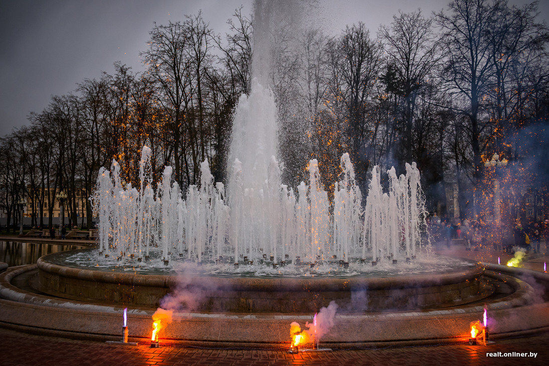 Наверное, правильно будет вести отсчет теплого сезона в Минске с того момента, когда начинают свою работу столичные фонтаны. Торжественная церемония прошла сегодня вечером у самого большого по площади городского фонтана, расположенного перед Национальным академическим Большим театром оперы и балета. И хоть погода подвела, можно не сомневаться: дальше будет теплее.