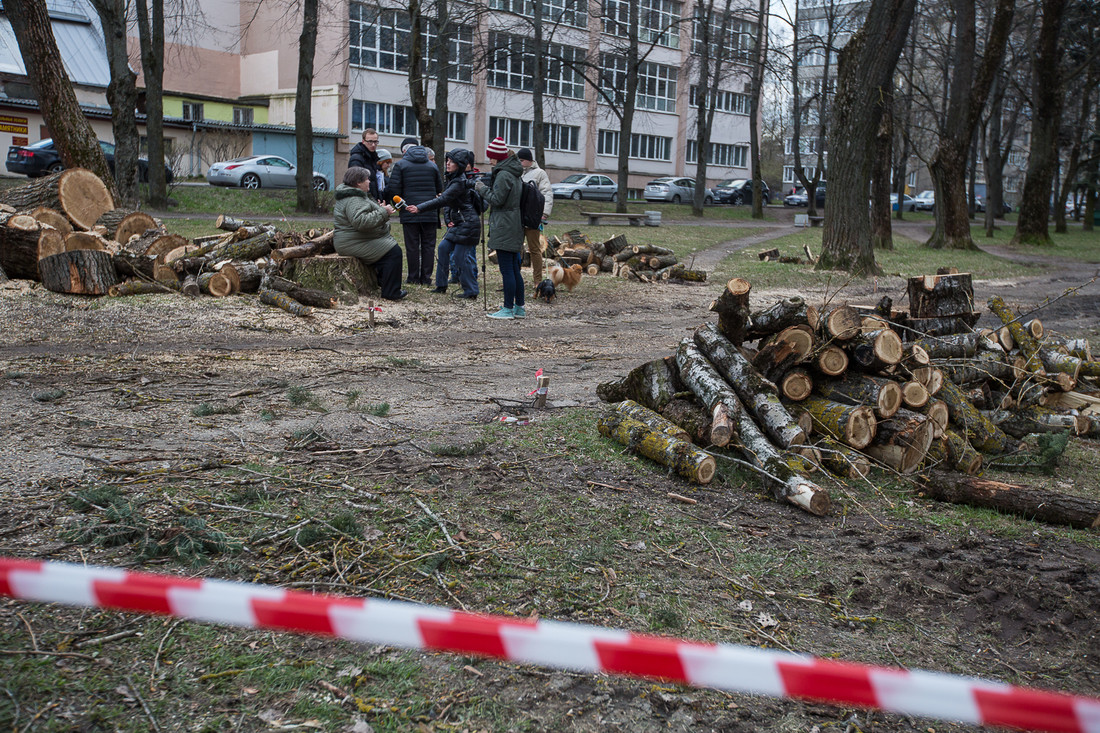 «Мы составили петицию и обратились с ней в администрацию Советского района, — продолжает Павел. — В документе мы высказались против по трем пунктам: во-первых, вырубки без результатов заключения эксперта о состоянии деревьев, во-вторых, появления на бульваре объектов торговли, в-третьих, возведения того самого „объекта для проведения массовых мероприятий“. Также мы потребовали оповещения и согласования с жильцами всех работ. Толкового ответа по существу от администрации Советского района мы не получили, потому сегодня утром направили петицию в горисполком. Под документом поставило подписи около 200 человек. Продолжаем встречаться на бульваре для обсуждения и координации дальнейших действий. А тем временем уже примерно половина деревьев спилена».