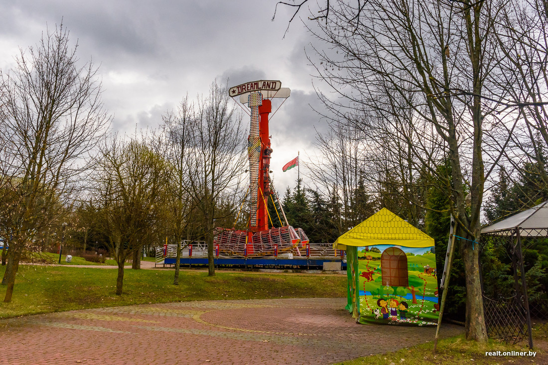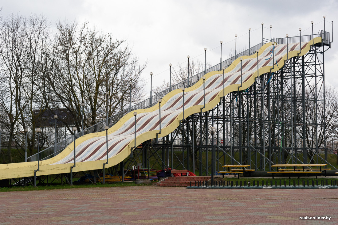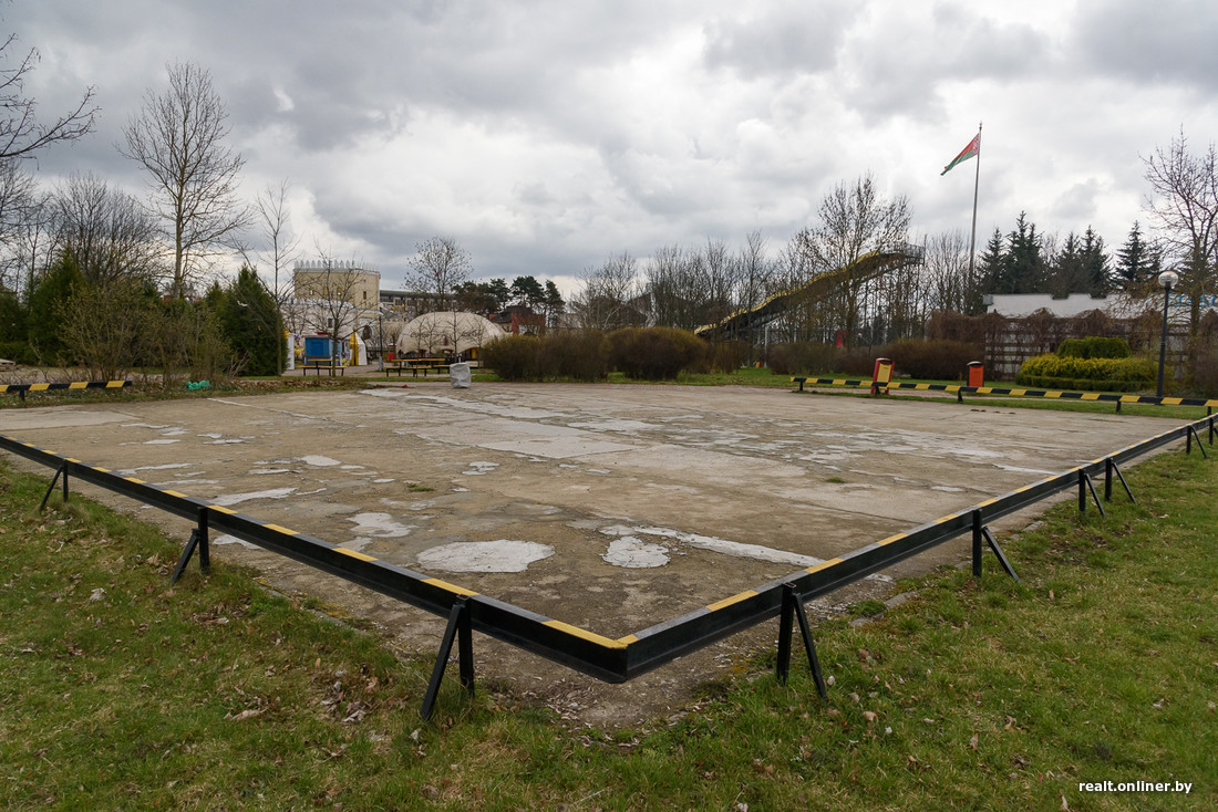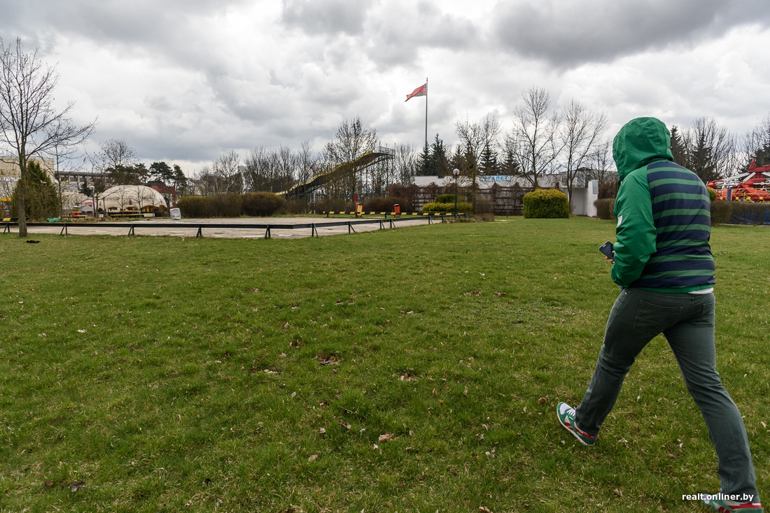 В «постзимнем» состоянии территория с неводными аттракционами нагоняет тоску: конструкции с выцветшей краской, пустынные дорожки, пожухлая трава. Ситуация незначительно меняется с приходом тепла, но все же парк себя изжил — это признают и его владельцы. Чтобы ценное место на берегу Свислочи не пропадало зря, было решено его модернизировать. Радикальные изменения с ним произойдут буквально в течение нескольких месяцев.