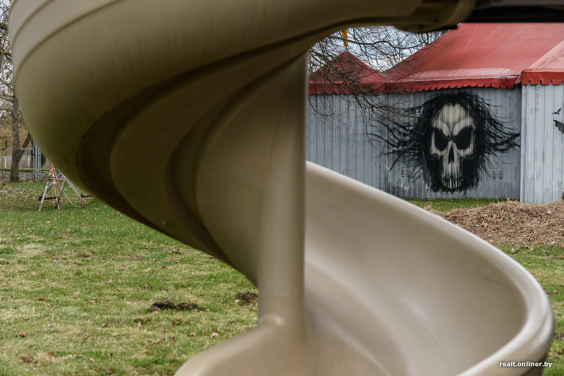 Парк развлечений «Дримлэнд» на улице Орловской в Минске состоит из нескольких частей: аквапарка, площадки с аттракционами, ресторана и кафе. Этим летом аквазона наконец заживет новой жизнью — заработают водные горки, которые с 2015 года не использовались по своему прямому назначению. А вот другая часть парка, наоборот, пребывает в упадке.