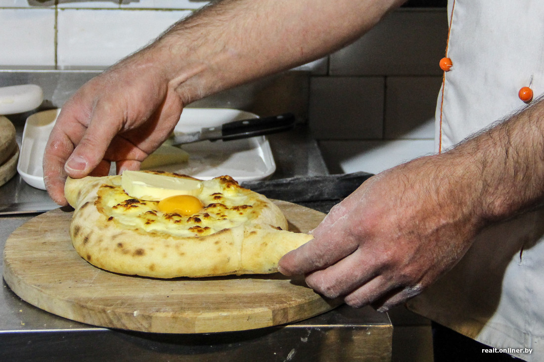 Повар Ромази в одном из ресторанов утверждает, что делает лучшее в Батуми хачапури (так говорит каждый повар). Мужчина автоматизированно раскатывает тесто, кладет внушительное количество сыра и живо бросает все это в печь. 7 минут — и хачапури готово. Туристы бросаются на смущенное вниманием блюдо и фотографируют как главный трофей поездки. Ромази знает, чего хочет публика, и сыплет эпитетами: тесто у аджарского хачапури как лодка, яйцо — как солнце, сыр — как море. Таких «поэтических» хачапури штампуется до 500 в день.
