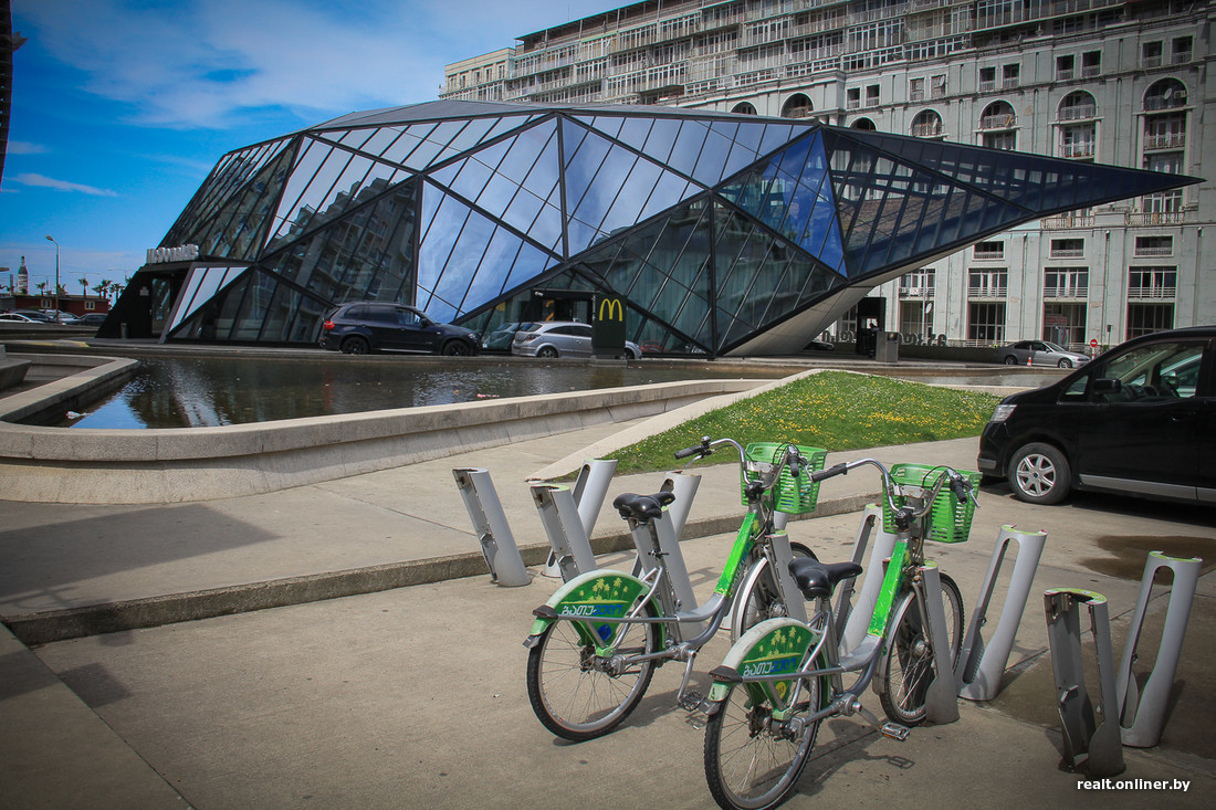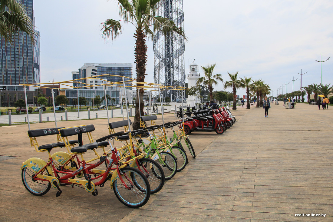 ЗОЖ, поработивший мир, добрался и до Батуми. Пробежки устраивают и стар, и млад, прерывая их занятиями на турниках и тренажерах, раскиданных по всей набережной. Прокаты двухколесных и трехколесных — на каждом шагу. Создан даже государственный автоматизированный прокат фирменных зеленых велосипедов BatumVelo. Можно взять такой в одной точке, а сдать в другой. Стоит эта радость 2 лари (1,5 рубля) в час. Частники берут дороже — 3 лари (2,3 рубля) за полчаса.