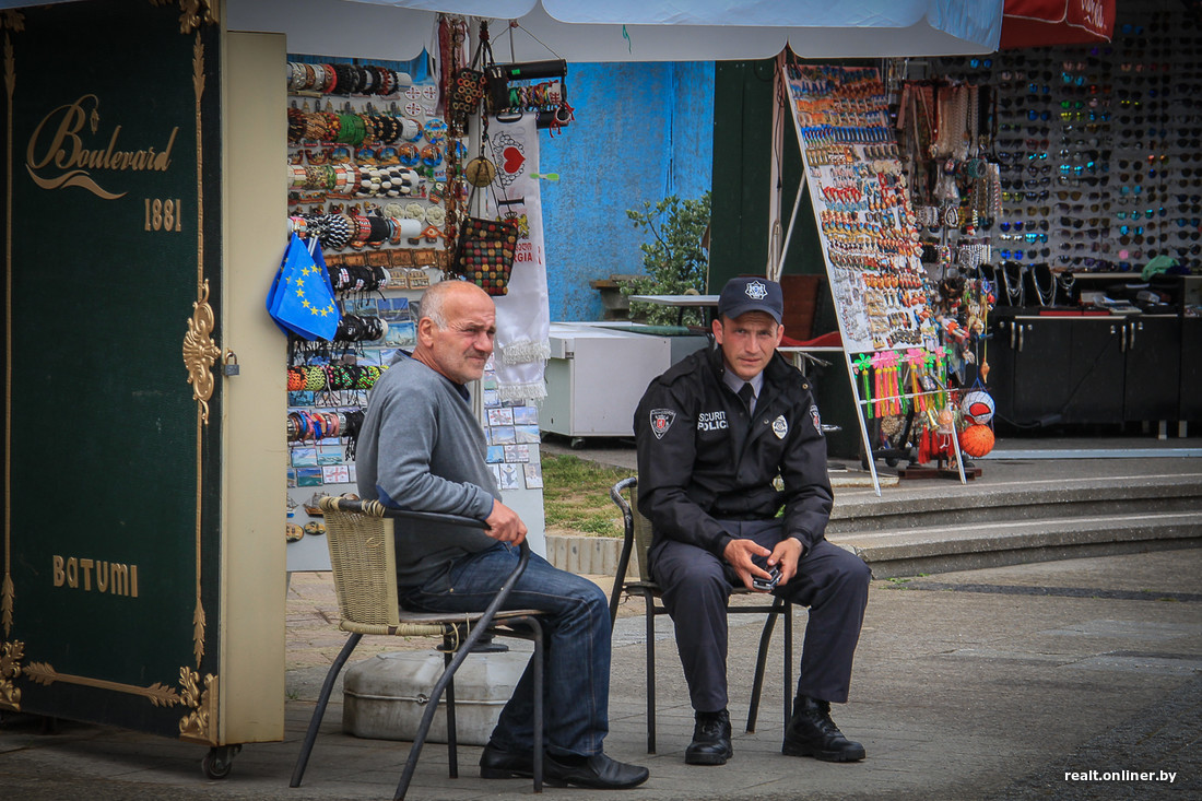 Вообще, море в пределах постсоветского пространства плотно ассоциируется с кишащей толпой раздетых людей на пляже, сквозь которую пробираются экстремально загорелые продавцы чурчхелы и горячей кукурузы. Оголтелого отдыха в Батуми нет. Чинно гуляют пенсионеры, велосипедисты осваивают велодорожку, молодежь улыбается и выглядит бесстыже красиво. За всем следят милиционеры, которые вполне могут погреться на солнышке и потрещать за жизнь с продавцом сувениров.