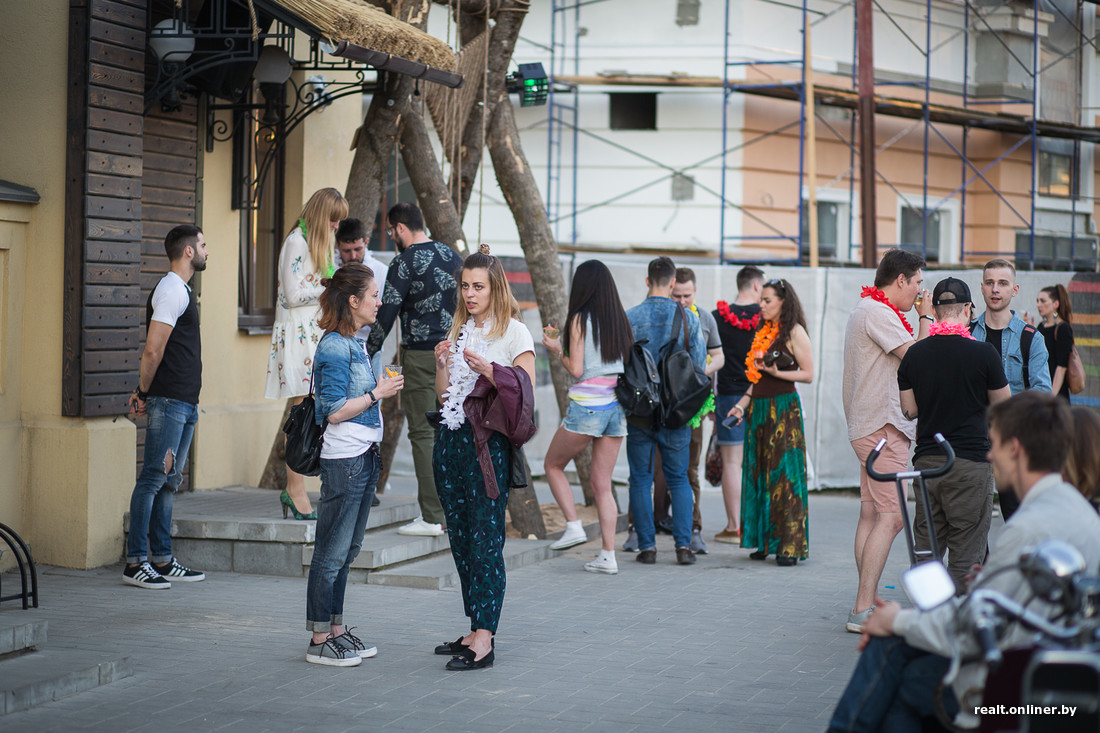 Вчера вечером в уже известном доме на Зыбицкой, 6 с размахом открылось новое заведение «На пляже». Владельцы бара устроили для селебрити и блогеров шумную вечеринку с ромовыми коктейлями, музыкой и танцами. Заведение сильно отличается от других минских баров: ни одной лофтовой кирпичной стены, ни торчащих труб, ни обшарпанного пола. В общем, всё не как у людей. Как выглядит новый бар и что происходило на его открытии — в фоторепортаже Onliner.by.
