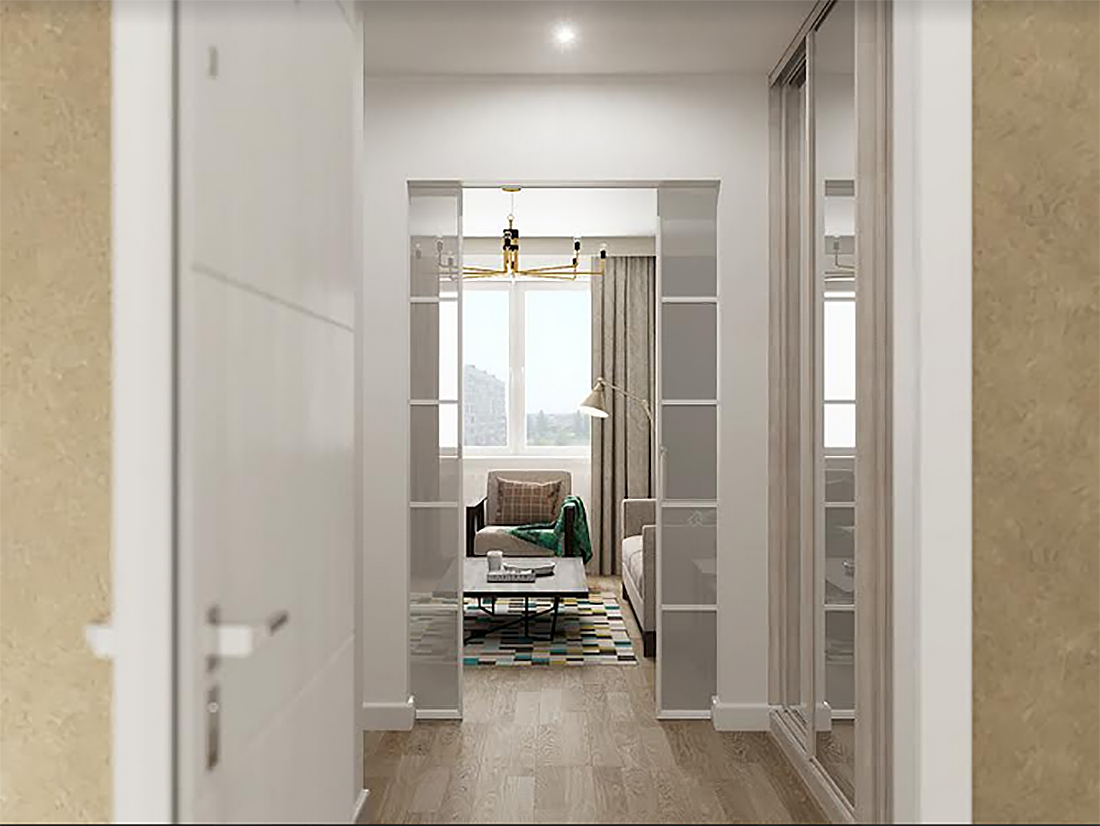 Над концепцией квартир с ремонтом под ключ трудились дизайнеры. Они выбрали пастельные тона для стен, светлый пол, облицовку стен керамической плиткой в санузлах и определили расположение встроенных шкафов. Находятся «пробники» на 6—8-м этажах.