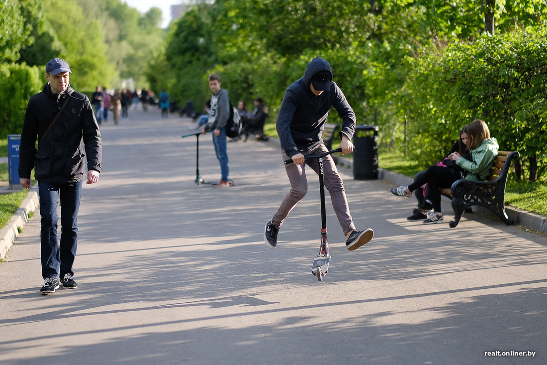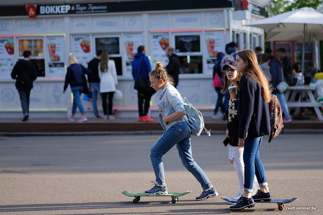 Несмотря на обилие гуляющего народа, в парке не тесно. Спортплощадок всем хватает, еда продается буквально на каждом шагу. Вариантов, куда пойти и чем заняться, масса. Иная ситуация в минских парках: возле аттракционов и на центральной аллее шум-гам, столпотворение, а стоит отойти в сторону на 100 метров, как ни лавочек, ни урн, жизнь замирает.