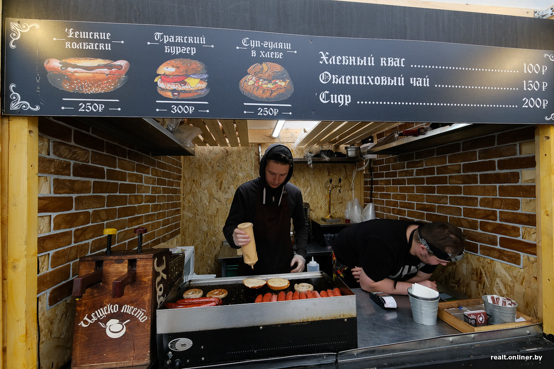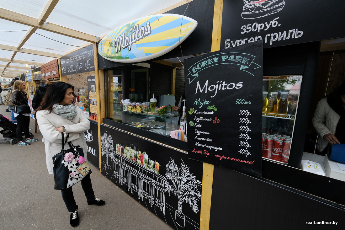 Еще одна беда минских парков — общепит. Хот-доги, шашлык, сахарная вата, попкорн, газировка. А где же здоровая еда? Что-то похожее было в Москве 6—7 лет назад. После обновления на смену сосисочным пришли хипстерские стрит-фуд-кафе и модные рестораны. На завтрак можно подкрепиться скандинавским сэндвичем или отведать традиционной китайской лапши, отыскать свежую выпечку в пекарне, на обед — заказать классические блюда итальянской или тайской кухни. Один из ресторанов ориентирован на вегетарианцев. Еду и напитки можно взять навынос и устроить пикник на лужайке или прямо на набережной.
