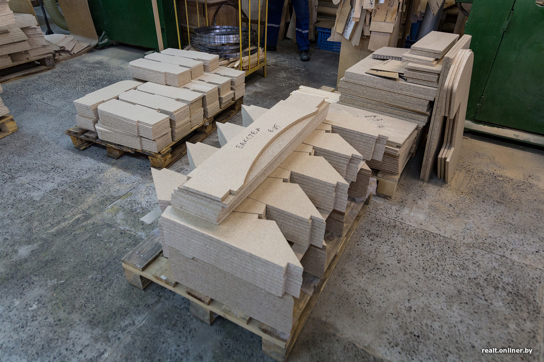 Мебель для экспорта в Европу делают в отдельном цеху. Для Польши, Германии и Бельгии «Пинскдрев» создает совершенно другую продукцию. По сути, иностранные производители используют только рабочую силу и оборудование: эскизы они разрабатывают сами, а после выпускают по ним мебель под своими брендами.
