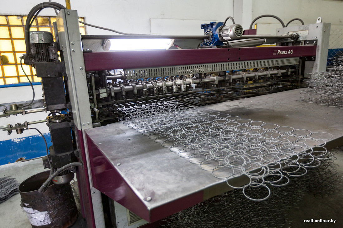 Для создания пружинного блока нужно всего лишь два станка. Первый закручивает проволоку в коническую пружину. Так называют вид пружин, которые могут сжиматься в одну плоскость: звенья в них не соприкасаются, что увеличивает их прочность и позволяет сохранять человеческие тела невредимыми. В сутки здесь производится около 120 тыс. пружин.