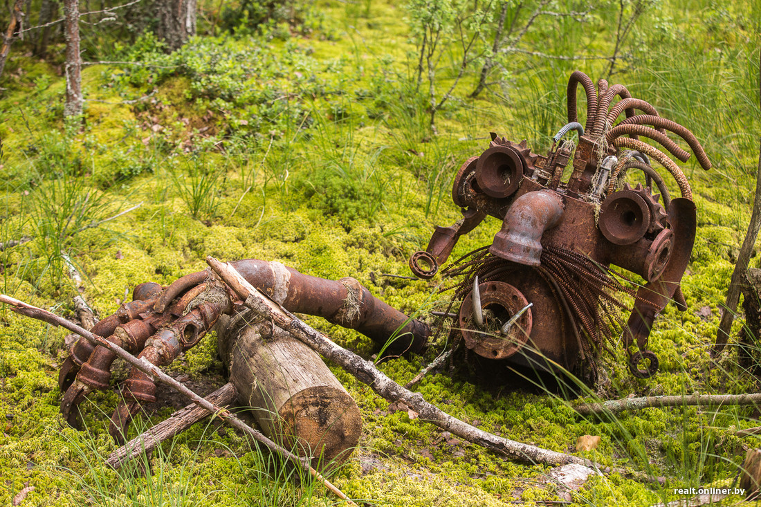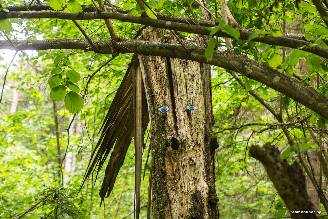 Изюминка экологической тропы — 17 необычных инсталляций, созданных при участии известных белорусских дизайнеров и скульпторов. Среди установленных персонажей — Русалка, Аржавейник, Полевик, Пущевик и другие.