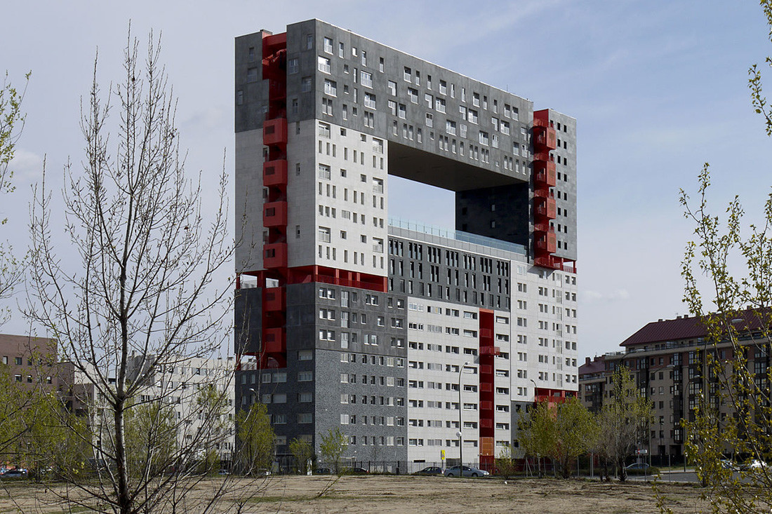 В начале XXI века муниципалитет мадридского пригорода Санчинарро решил разбавить однообразную типовую послевоенную застройку новым модным жилым зданием. Чиновники рассчитывали, что этот объект сможет стать своеобразным маяком, который послужит символом обновления их района, привлечет к себе внимание как молодых мадридцев, так и потенциальных инвесторов. Для проектирования была приглашена нидерландская студия MVRDV с прекрасной репутацией и большим опытом создания эксцентричных зданий. Голландцы превзошли сами себя.