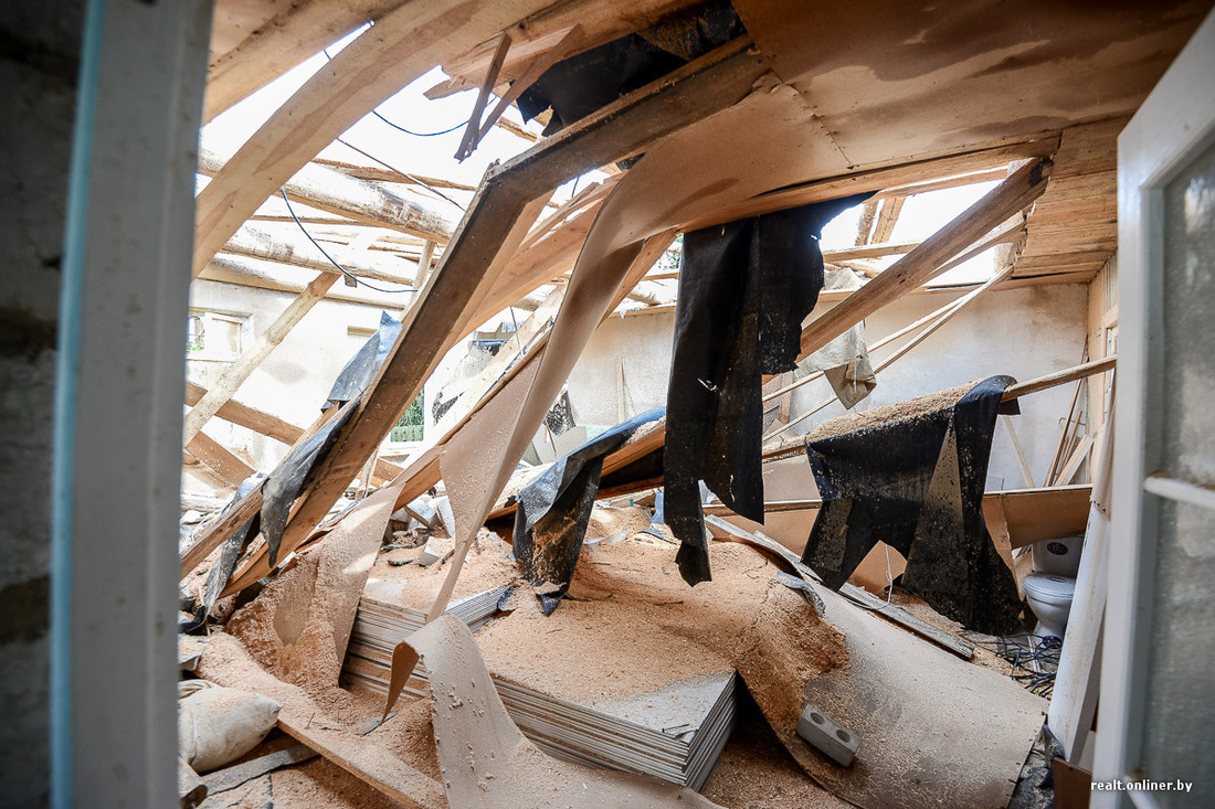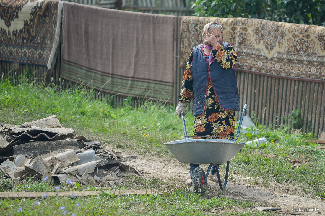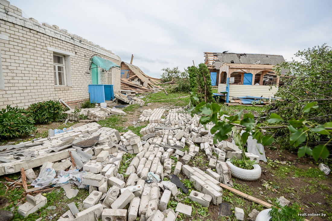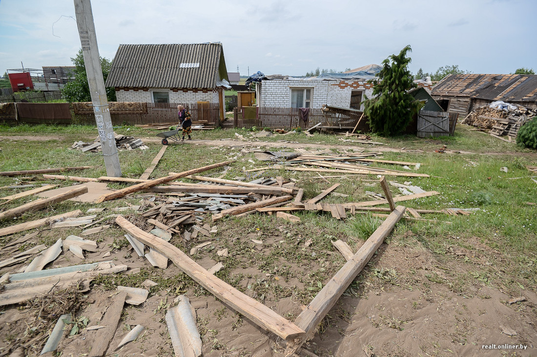 Смолевичский район пострадал больше других. Дорога в деревню Кулешовка была завалена упавшими деревьями, поле усыпано кусками шифера, нажитое имущество породнилось в свалках и стало общим.