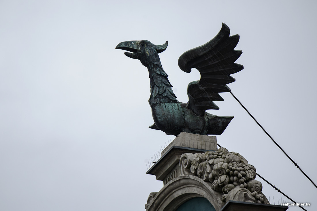 Удивительно, но этот почтамт столь типичного для северной Балтики вида уцелел при освобождении города и после окончания войны был восстановлен. Площадь перед ним в 1979 году украсила экспрессивная металлическая скульптура работы Винцента Кучмы. Смертельно раненному почтальону, из сумки которого высыпаются письма, передает винтовку богиня победы Ника.