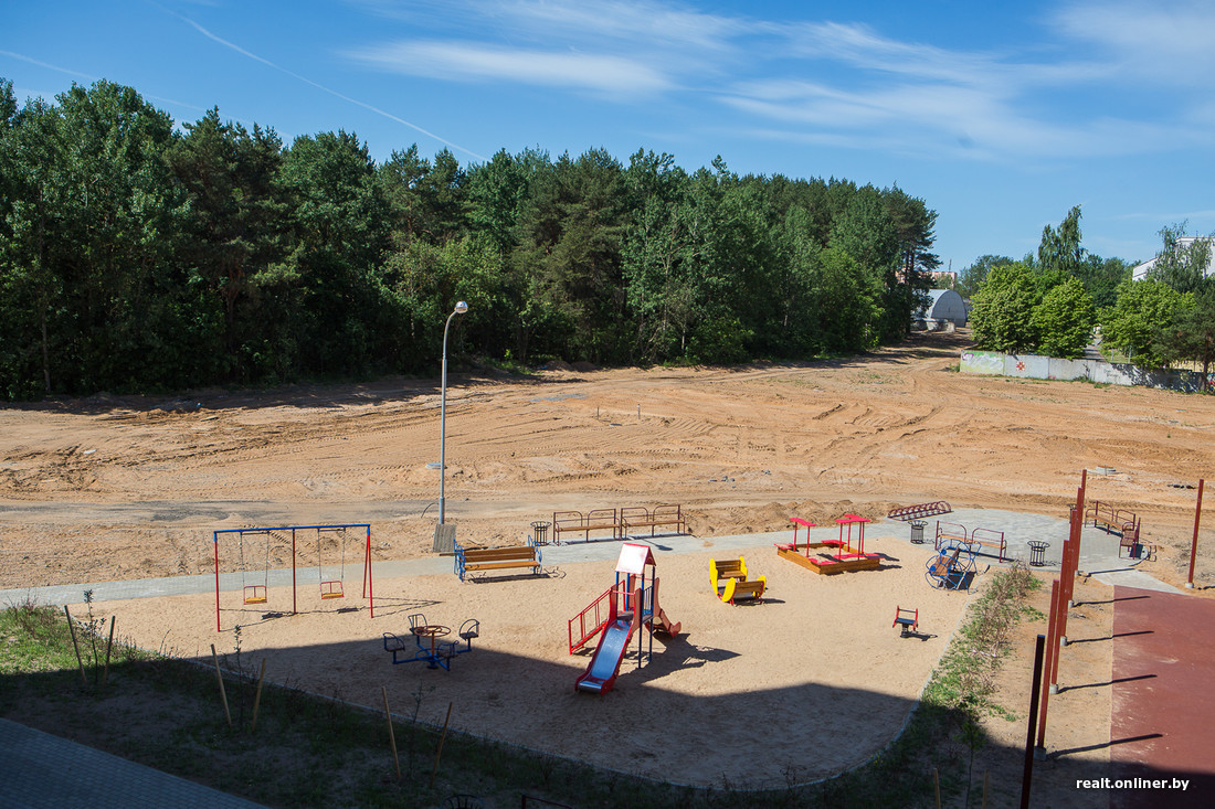Многоэтажка под номером 5 по улице Павлины Мяделки выглядит опрятно и симпатично: приятные цвета, почти прозрачные лоджии, «эркерная» ритмика. Вокруг лес и пока еще пустыри, которые по вполне понятным причинам вскоре перестанут быть таковыми. Обладателем двухкомнатной квартиры в не обжитом пока доме стал минчанин Олег. Молодой человек давно мечтал о жилье для себя и семьи и только благодаря невысоким ценам на квадратный метр в домах, строящихся в Новинках, смог позволить себе такую роскошь.