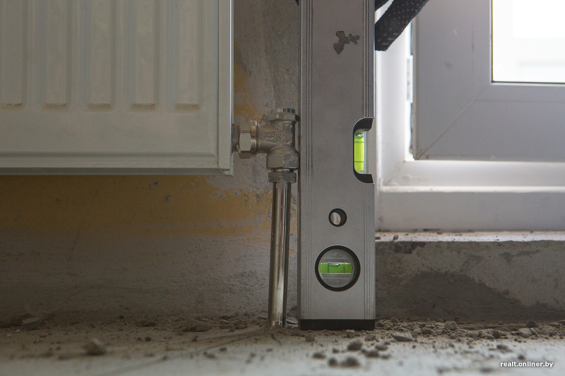 Стены прямо за радиаторами для чего-то покрасили «веселой» краской. Такой цвет еще попробуй перебей, особенно если хочешь, чтобы поверхности в квартире были белыми.