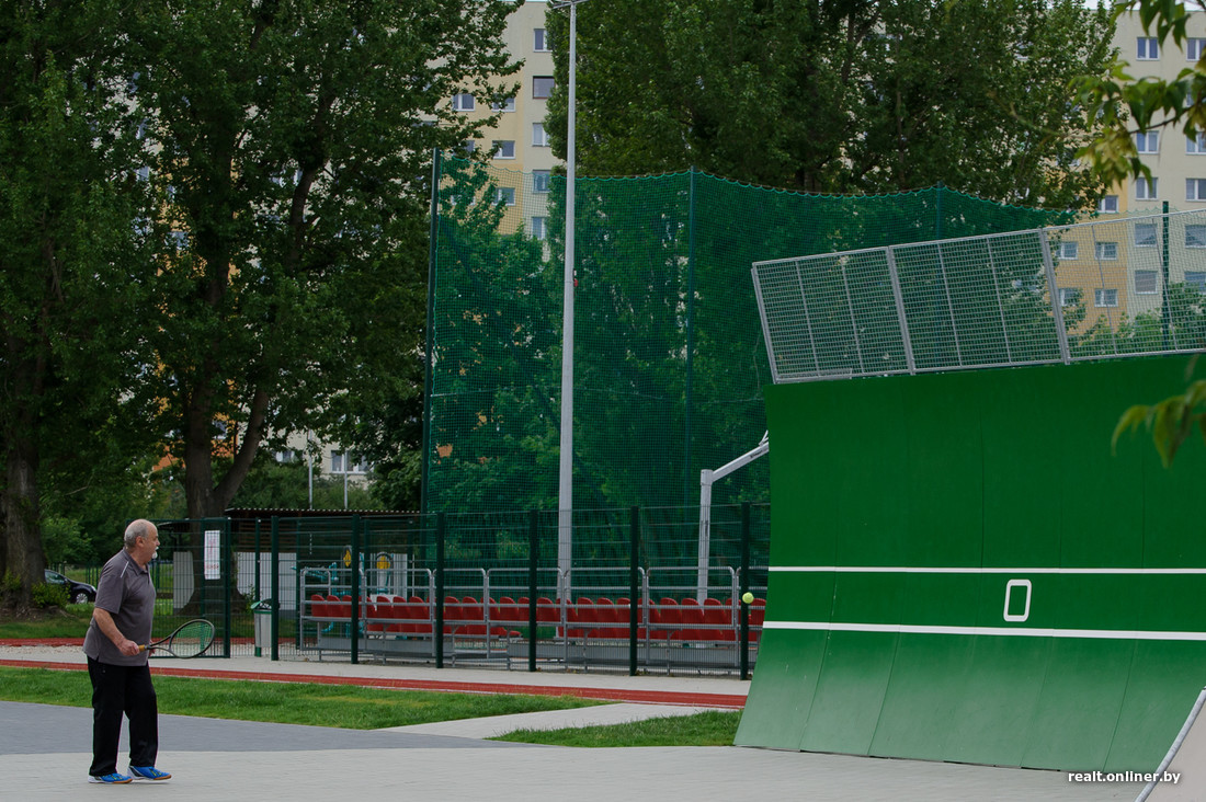 Вместо машин в таких просторных дворах размещали школы и детские сады, общественные центры, спортивные площадки, включая футбольные поля и даже теннисные корты. Частыми элементами были и искусственные возвышенности, возможно, сохраненные от прежнего авиационного прошлого и несколько компенсирующие невыразительный рельеф площадки.