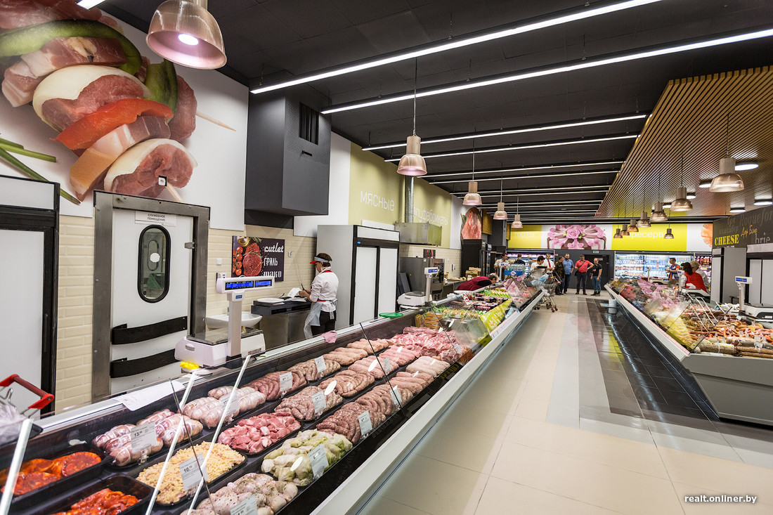 Отдельно в магазине попросили обратить внимание на витрину с мясной продукцией, где красуется надпись «Свинина по датской технологии». По словам маркетолога Юрия Заболотного, в Беларуси работают всего два поставщика, которые занимаются импортом такого мяса.