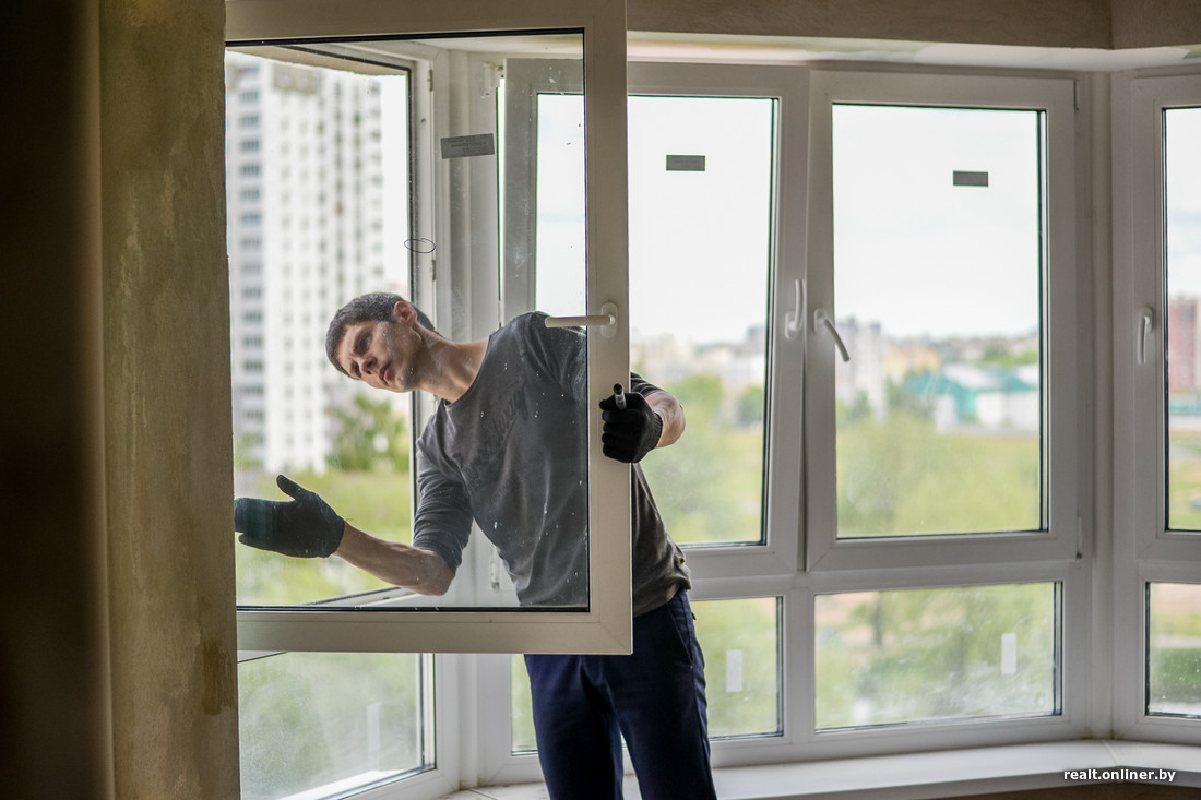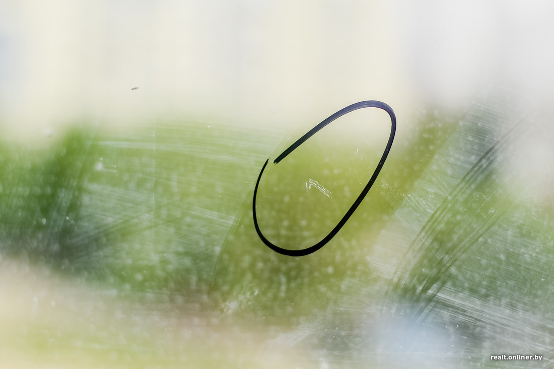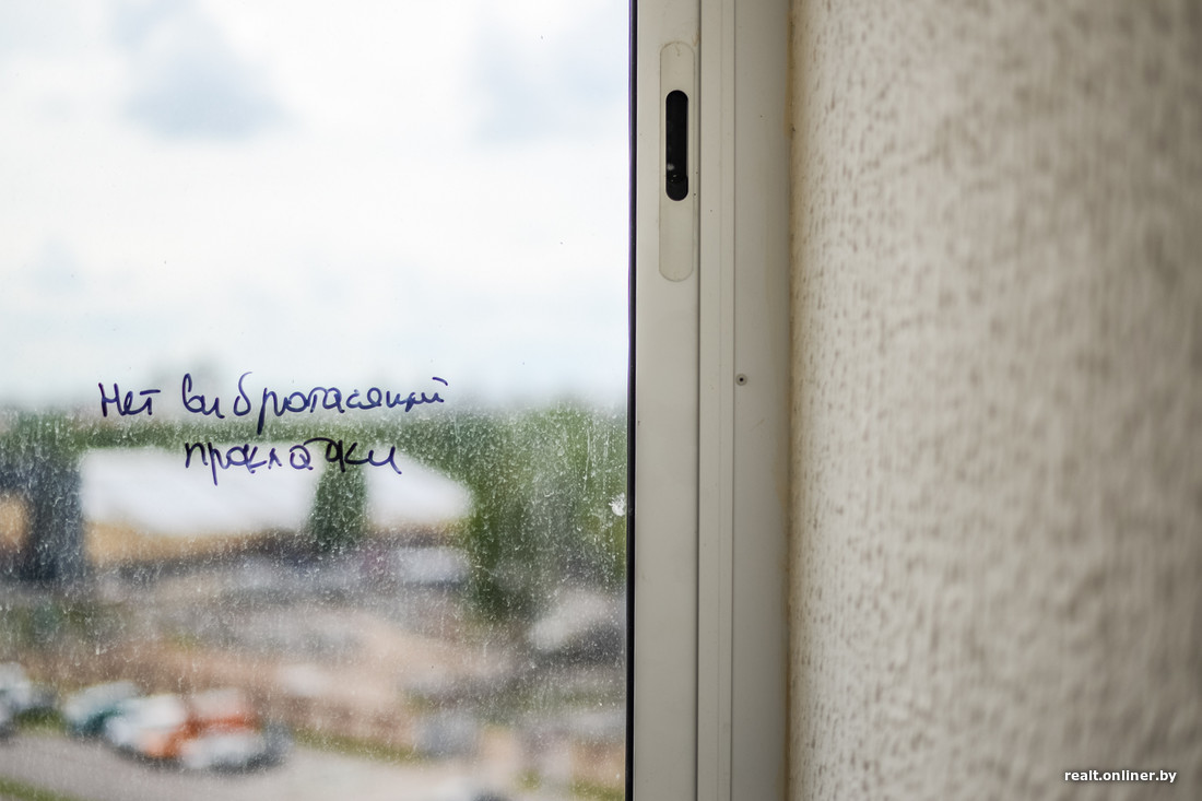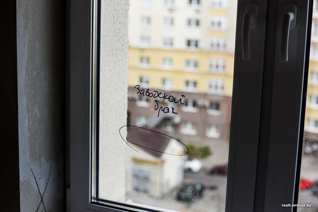 — Есть вопросы по окнам: помимо царапин, избежать которых во время строительства очень трудно, есть и заводской брак. Если смотреть на стеклопакет сбоку, он переливается всеми цветами радуги. Выглядит так, будто на воде разлили бензин. К слову, сами створки отрегулированы хорошо.