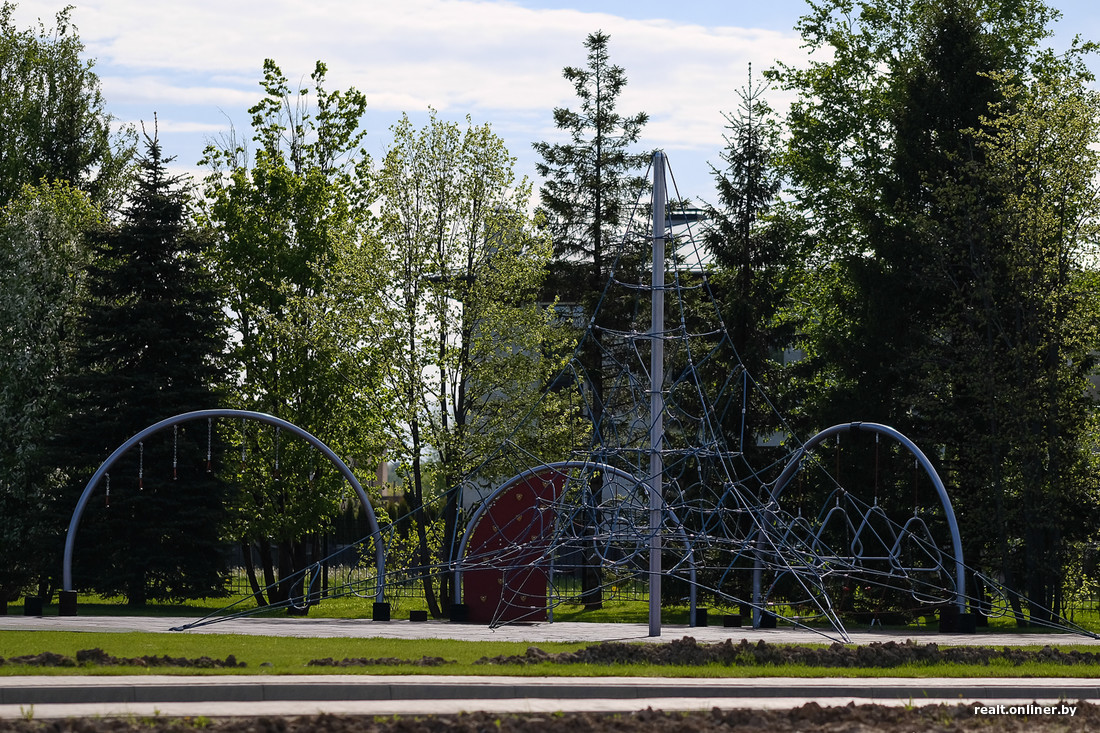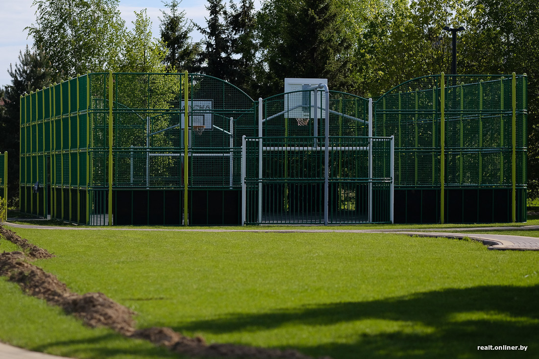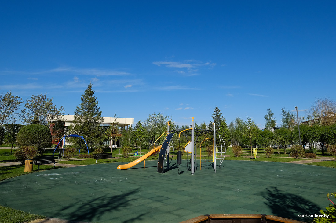 Территория колхозного поля была скудна на какое-либо ландшафтное разнообразие, всю природную среду застройщик создавал с нуля. Вдоль дорог растут ели, туи, березы, каштаны с фигурной стрижкой, представители экзотической хвойной и лиственной флоры. Все это крупномеры, привезенные из различных питомников. Технологией пересадки деревьев с развитой корневой системой давно овладел и минский «Зеленстрой», однако у нас она практически не применяется (даже на главных проспектах столицы вместо зрелых деревьев почему-то сажают хворостинки толщиной с палец).