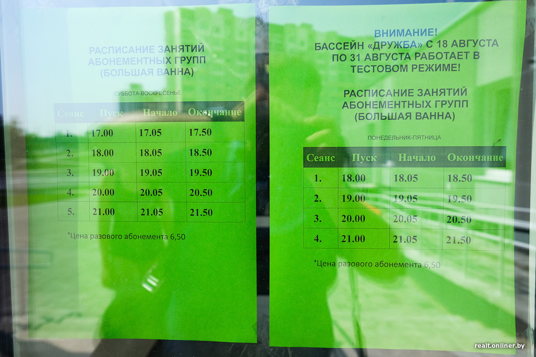 До 31 августа бассейн работает в тестовом режиме и открыт для посетителей исключительно в вечернее время — с 18:00 до 23:00. Пока персонал отрабатывает возможные недочеты и тестирует оборудование. Но уже с 1 сентября будет установлен новый режим работы — с 7:00 до 23:00. В дневное время к воде будут допущены только группы начальной подготовки и клуб плавания Александры Герасимени. Также будут работать несколько дорожек для общего пользования. Начиная с 18:00 бассейн смогут посещать все желающие.