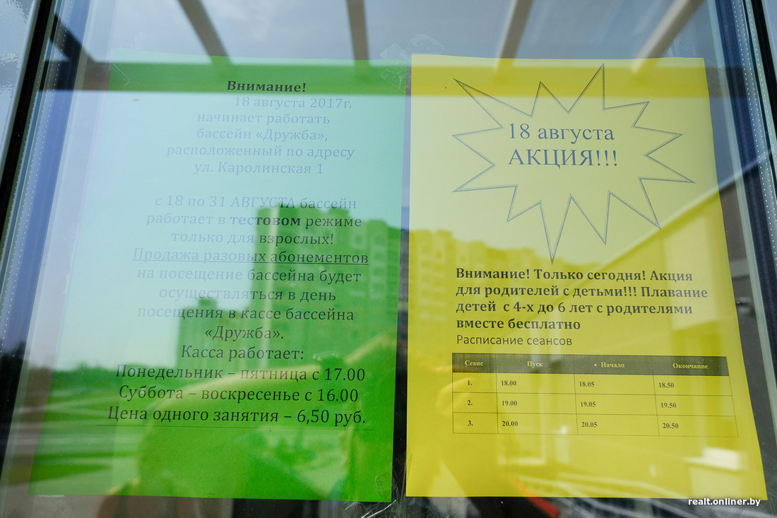 Несколько лет назад президент Беларуси Александр Лукашенко поручил подготовить проект комплекса с доступным по стоимости бассейном, а после этого — построить такие объекты в каждом районе Минска. Ответственные люди оперативно создали типовой проект и уже реализовали первый в микрорайоне Брилевичи. Здание и снаружи, и внутри скромное, без излишеств. Главная задумка — дать возможность всем минчанам вне зависимости от их платежеспособности посещать водные процедуры.