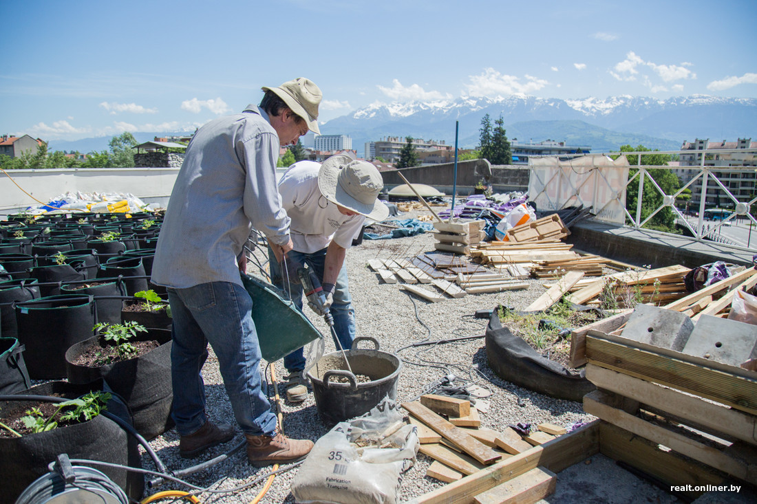 На крыше гренобльского Центра науки, техники и индустрии под палящим солнцем около тридцати человек послушно занимаются посадкой растений. Вокруг деревянные ящики с рассадой, мешки из геотекстиля и прототипы несущих стен, предусмотренных для многоуровневой рассадки. Кто все эти люди и зачем они, изнывая от жары, занимаются таким странным делом?