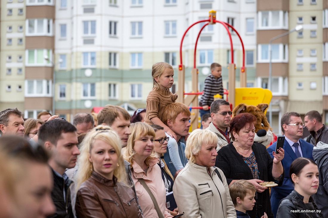 Сдачу дома приурочили к грядущему Дню знаний и 950-летию Минска. По случаю новоселья районная администрация устроила небольшой концерт. Была и официальная часть с красной лентой, после чего будущие жильцы потянулись в помещение товарищества собственников за ключами.