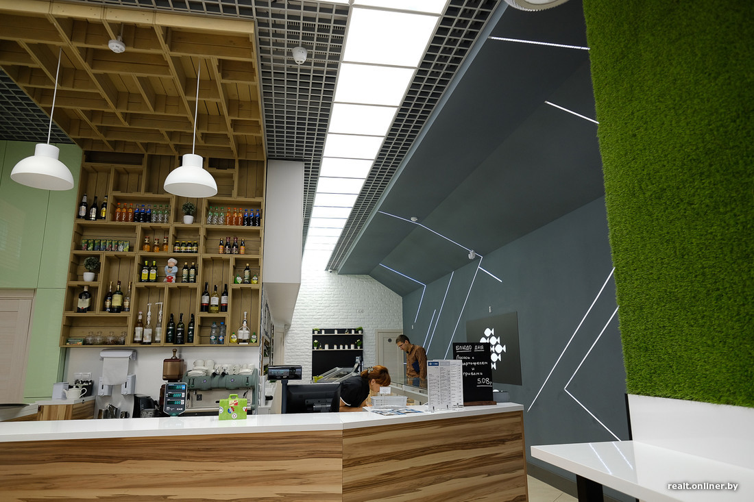 Маленькое помещение спасает нас от августовского холода, и Даша благодарна ему за это: после Мексики Минск — как Северный полюс. Внутри часть помещения — это магазин, другая часть — зона дегустации. Интерьер современный и светлый.
