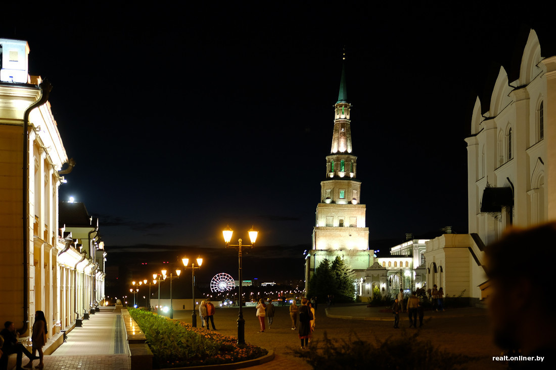 Почему в Казанский кремль обязательно нужно прийти дважды? Днем — чтобы рассмотреть архитектуру в подробностях, а потом вечером, когда включают подсветку зданий. С обзорной площадки открывается отличный вид на набережную и панораму города. К тому же можно ненароком попасть, например, на джаз-фестиваль: на территории кремля часто проводятся культурные мероприятия.