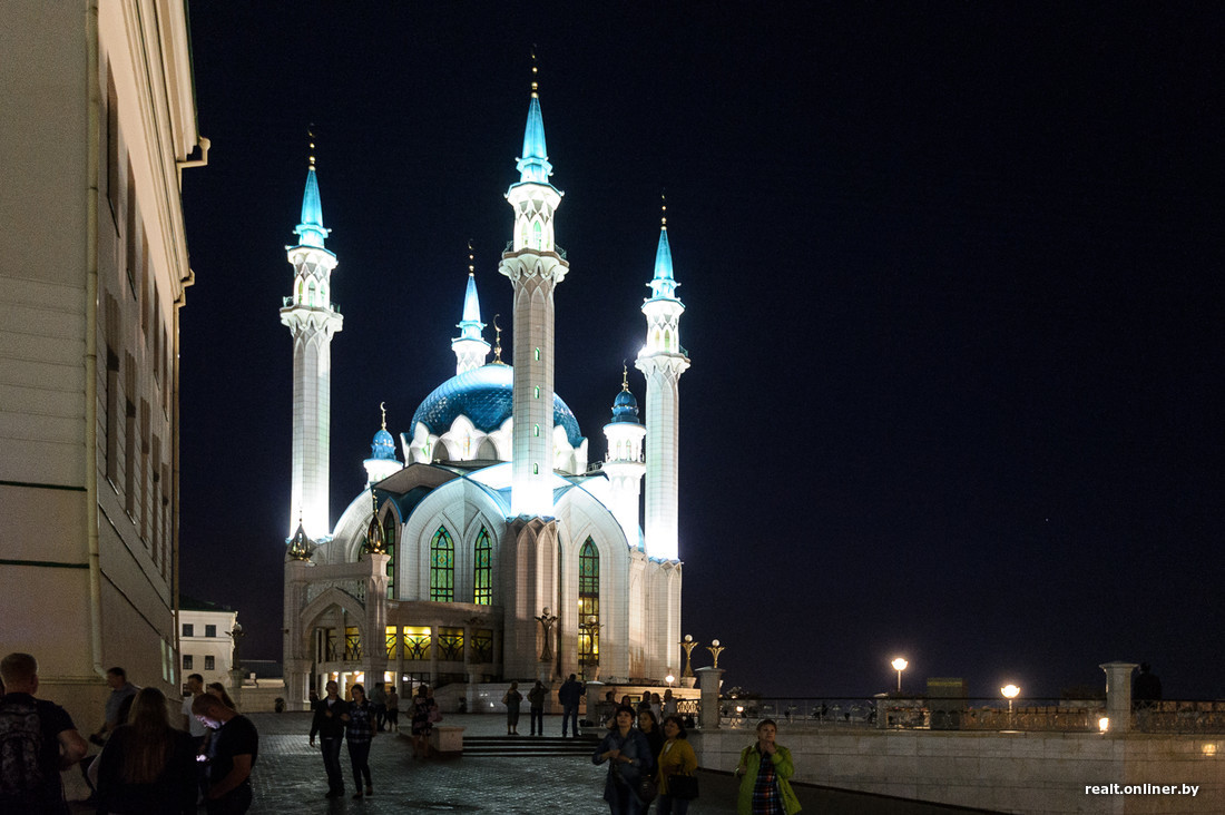 А буквально в сотне метров от него расположена главная мечеть Татарстана — Кул-Шариф. Высота ее минаретов составляет 58 метров. Храм был построен в 2005 году взамен мечети, разрушенной во время взятия Казани войском Ивана Грозного. Названа она в честь имама, руководившего обороной. Можно ли было представить такое еще несколько веков назад?