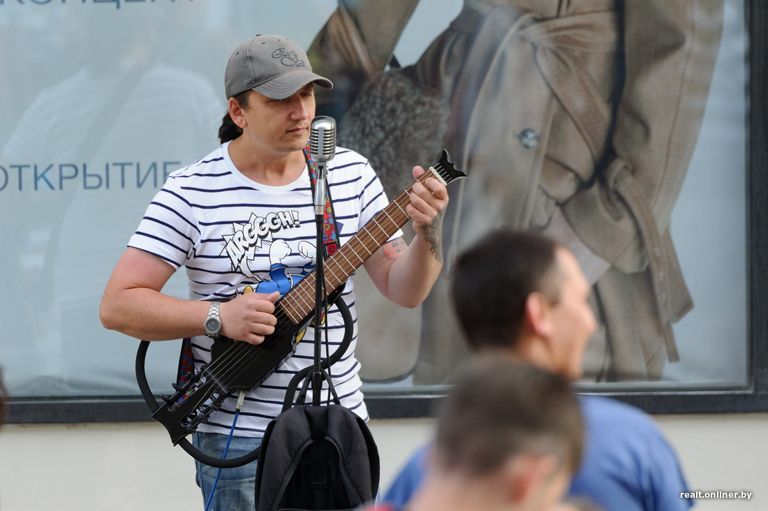 Постепенно выходим на пешеходную улицу. Такое ощущение, что оказался где-то в Европе: уличные музыканты, городские скульптуры, бары с крафтовым пивом.