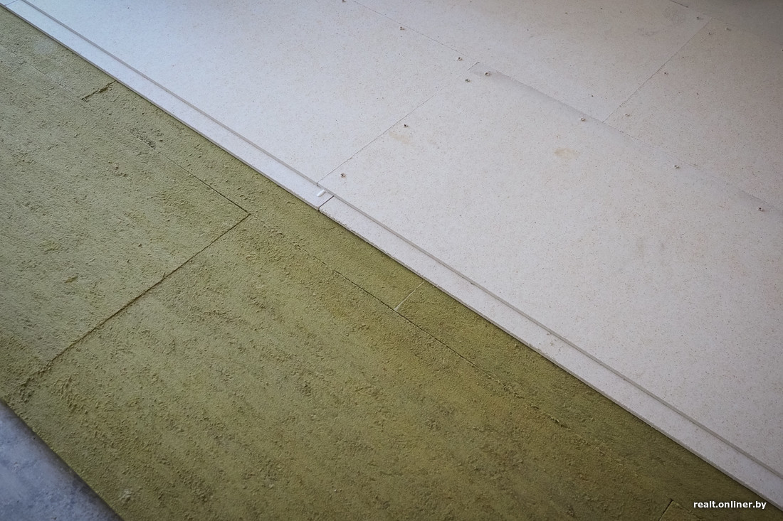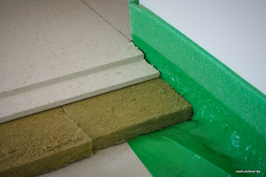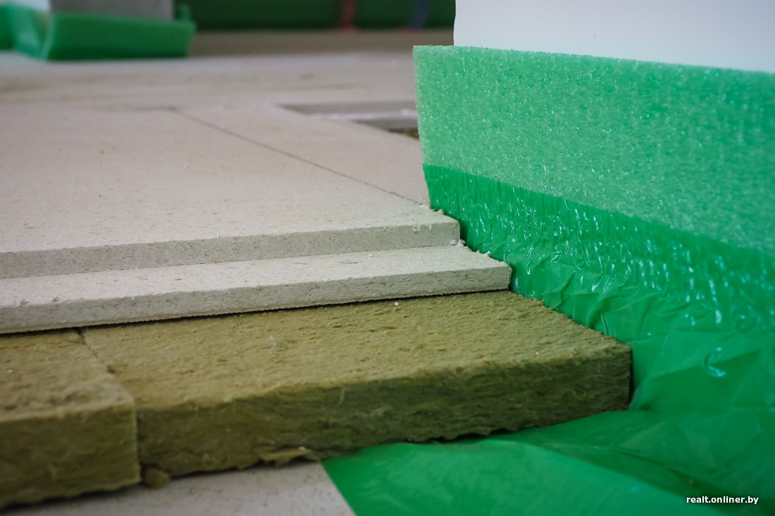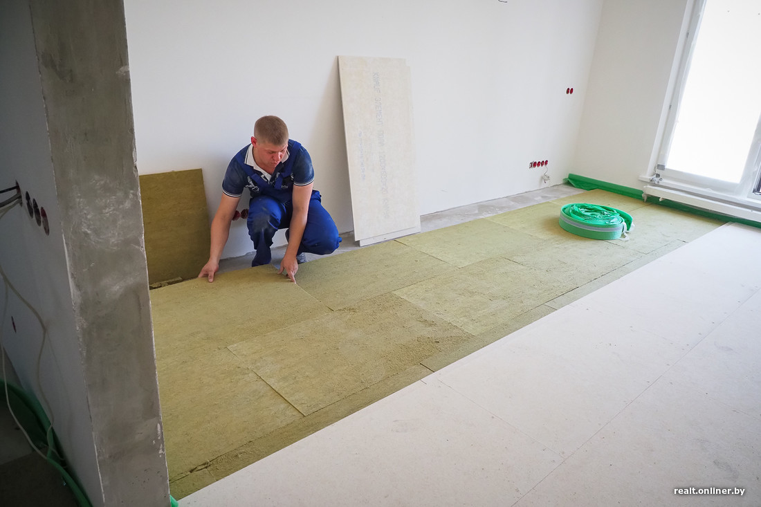 — Перед заказчиком стоял выбор: использовать полистирольные плиты (они отлично глушат ударный шум, но почти не уменьшают воздушный, к тому же пожароопасны), засыпать керамзитовым песком или положить минеральную вату. Нам подходили два последних варианта — заказчик решил остановиться на последнем: так ему показалось удобнее, — комментирует проект-менеджер компании Александр. — Минеральная вата имеет свои минусы: ее нужно укладывать на идеально ровную поверхность, к тому же она, в отличие от песка, имеет определенную толщину, которую нельзя регулировать. Но сам по себе материал достойный.