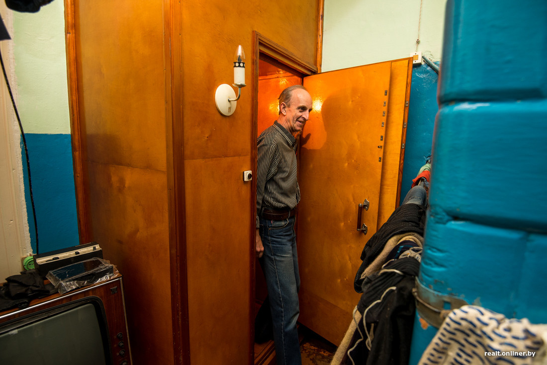Кабина из фанеры весит чуть больше 70 килограммов. Двери открываются вручную, при открытии внутри загорается свет. В кабине всего две кнопки: «Вверх» и «Вниз». На задней панели Антон Иванович установил аварийный выход, чтобы в случае поломки выбраться по стремянке. Тормозной механизм устанавливать не пришлось: лифт останавливается точно на этаже. Едет устройство медленнее заводских, но и спешить хозяину некуда: он уже два года как на пенсии.