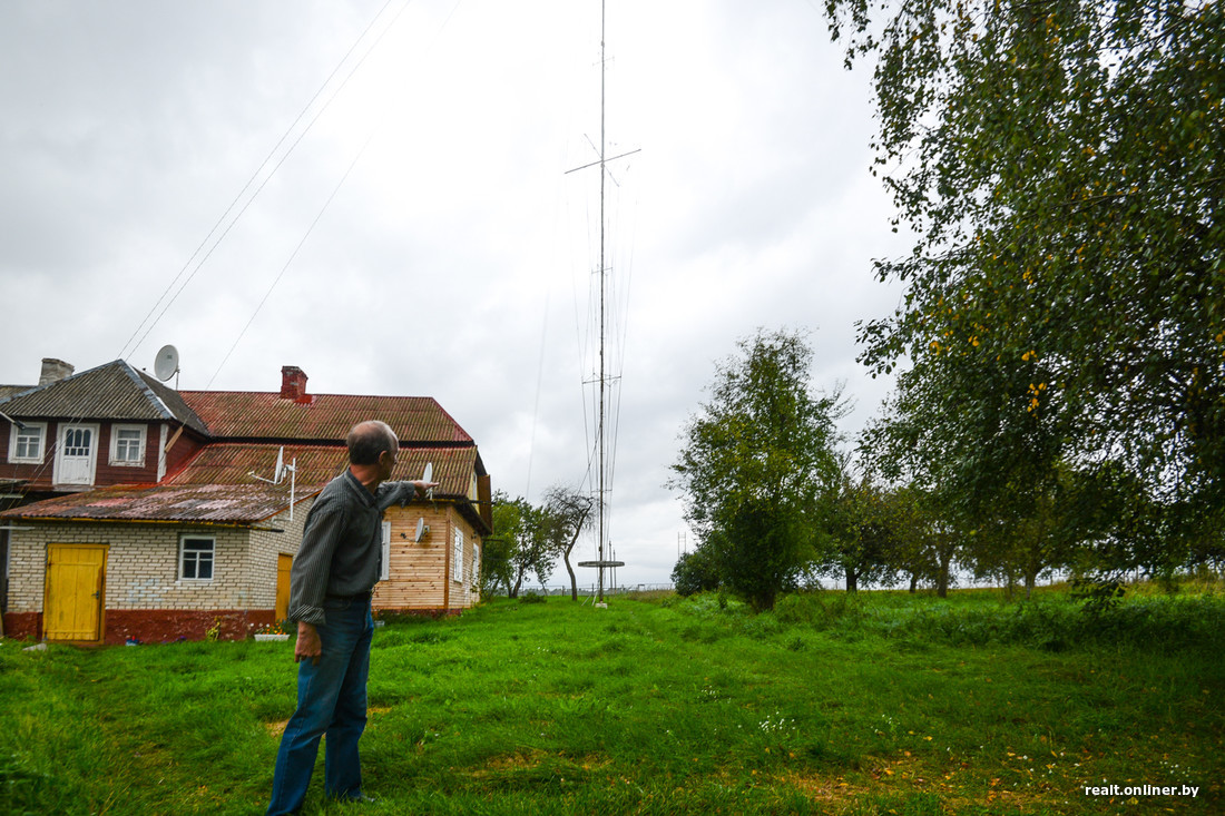 — В 1970 году купил себе радиолу (радиоэлектронное устройство, объединяющее в одном корпусе радиоприемник и электрофон. — Прим. Onliner.by). Сначала слушал что придется, а потом поймал ультракороткие волны — начало проклевываться что-то интересное, — вспоминает давнюю историю инженер-любитель. — Решил, что надо Польшу ловить: отсюда до Белостока напрямую километров 130. Вывел антенну на крышу — стало чуть лучше, но все равно не идеал. Решил перенести к дороге, где местность открытая, — все равно не совсем то. Так все наращивал-наращивал, совершенствовал, экспериментировал… Сегодня уже 52 метра высотой, но потом, может, еще пару метров докину.